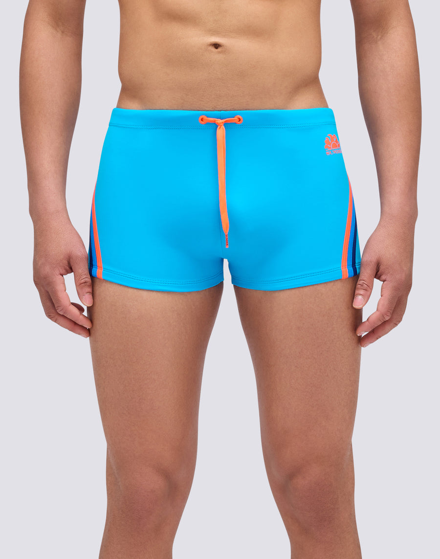 Boxer de bain pour homme à taille ajustable avec cordon de serrage et cordon de serrage contrasté : c'est un modèle intemporel en phase avec son temps car il est éco-durable grâce au tissu régénéré ECONYL® Made in Italy. Vous pouvez le porter aussi bien pour nager que pour bronzer et bronzer. Longueur de jambe extérieure 9"/23cm (en taille M).