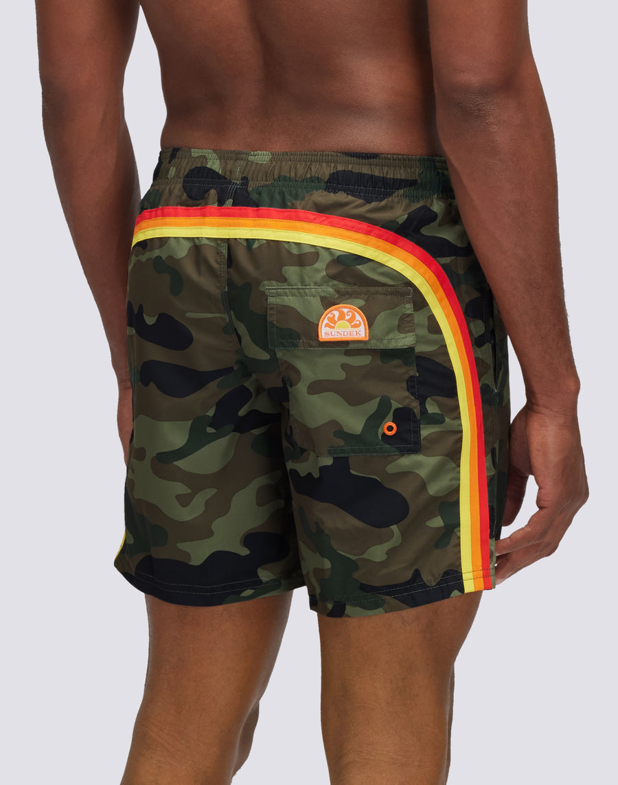 SHORT DE BAIN STRETCH MOYEN AVEC IMPRIMÉ CAMOU