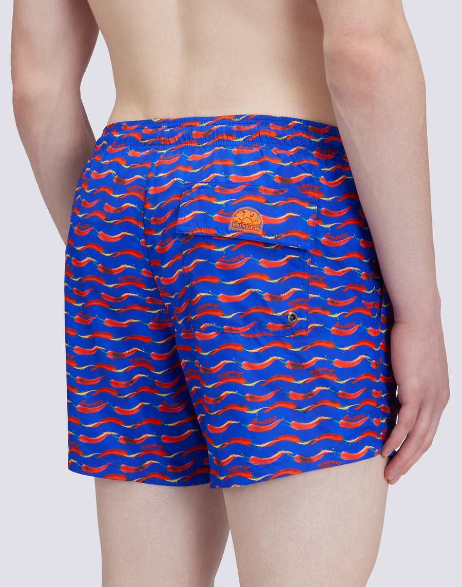 SHORT DE BAIN COURT À TAILLE ÉLASTIQUE AVEC IMPRIMÉ CHILINO EN POLY RECYCLÉ
