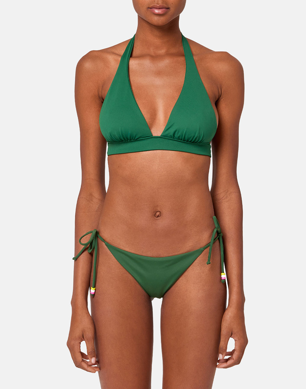 Réalisé en tissu écodurable et confortable, ce slip peut être ajusté sur les hanches à ta guise, grâce aux lanières à nouer ornées de trois perles multicolores. À associer au haut de bikini coordonné pour créer une tenue amusante à arborer en vacances.