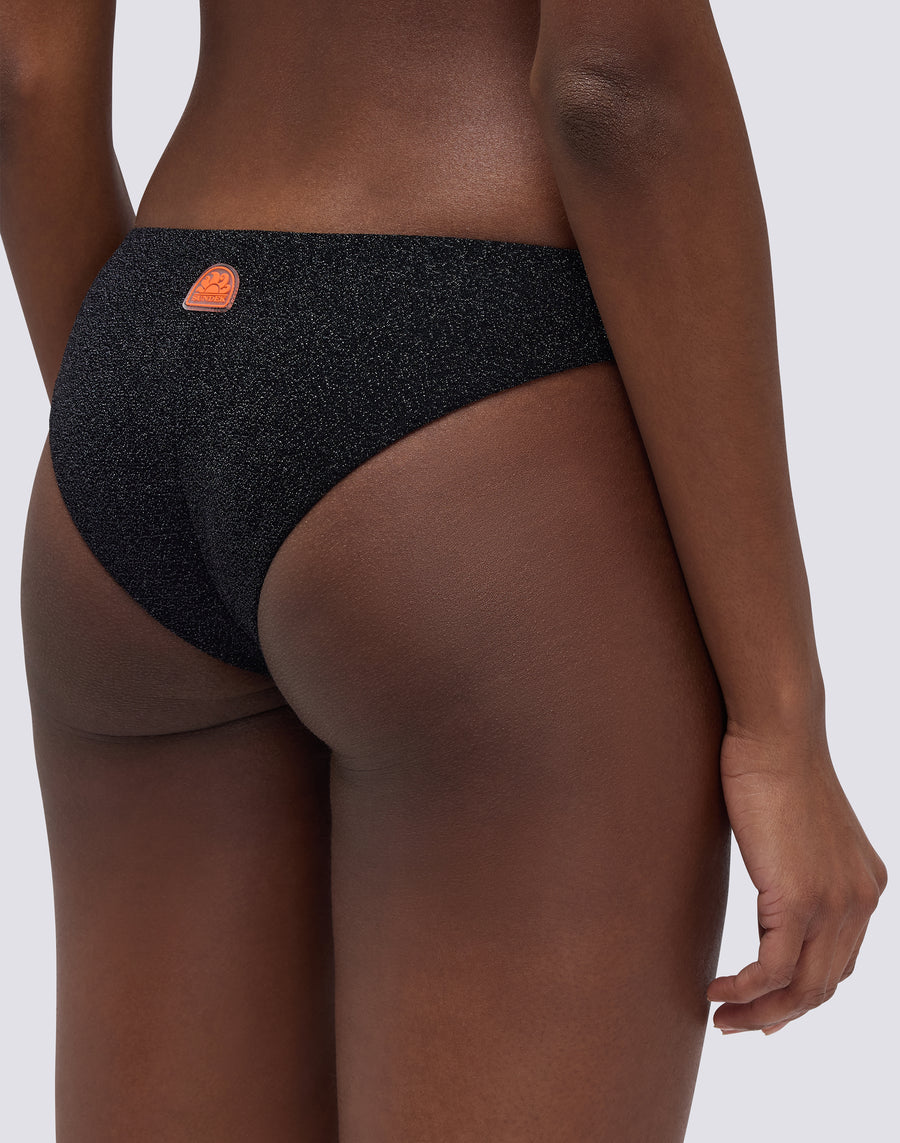 64 % POLYESTER 36 % ÉLASTHANNE Tissu en lurex brillant, confortable et avec une doublure qui garantit un contact doux avec la peau.