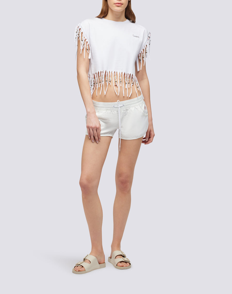 Parfait pour celles qui aiment un look de plage super informel, ce débardeur à franges pour femme est le vêtement idéal pour les journées d'été. Polyvalent et tendance, il est idéal lorsqu'il est associé à un bikini.