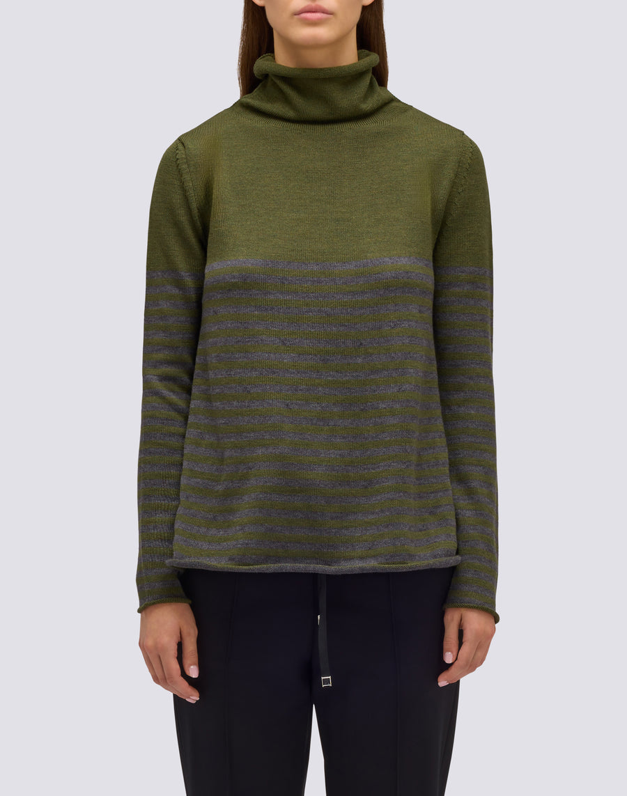 PULL COL MONTANT FEMME AVEC DÉTAIL RAYÉ