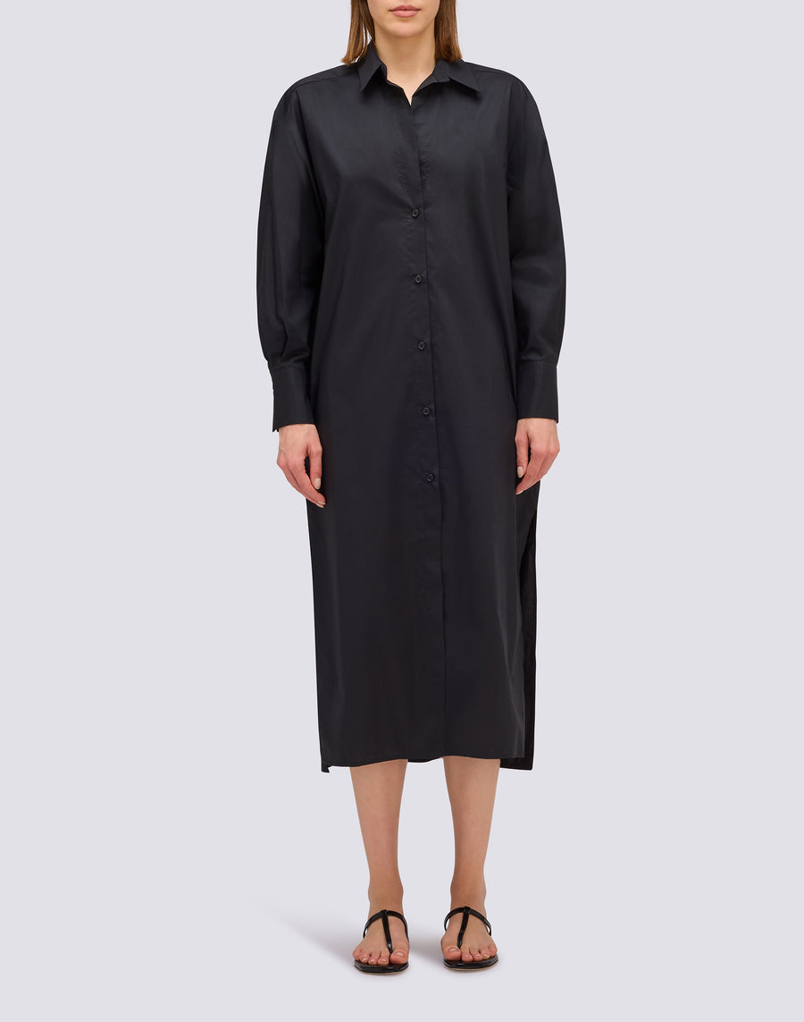Cette robe en popeline est parfaite pour toute femme qui souhaite se sentir élégante et confortable. La texture légère du tissu est idéale pour le printemps et l'été, tandis que la coupe classique et simple le rend adapté à différentes occasions.