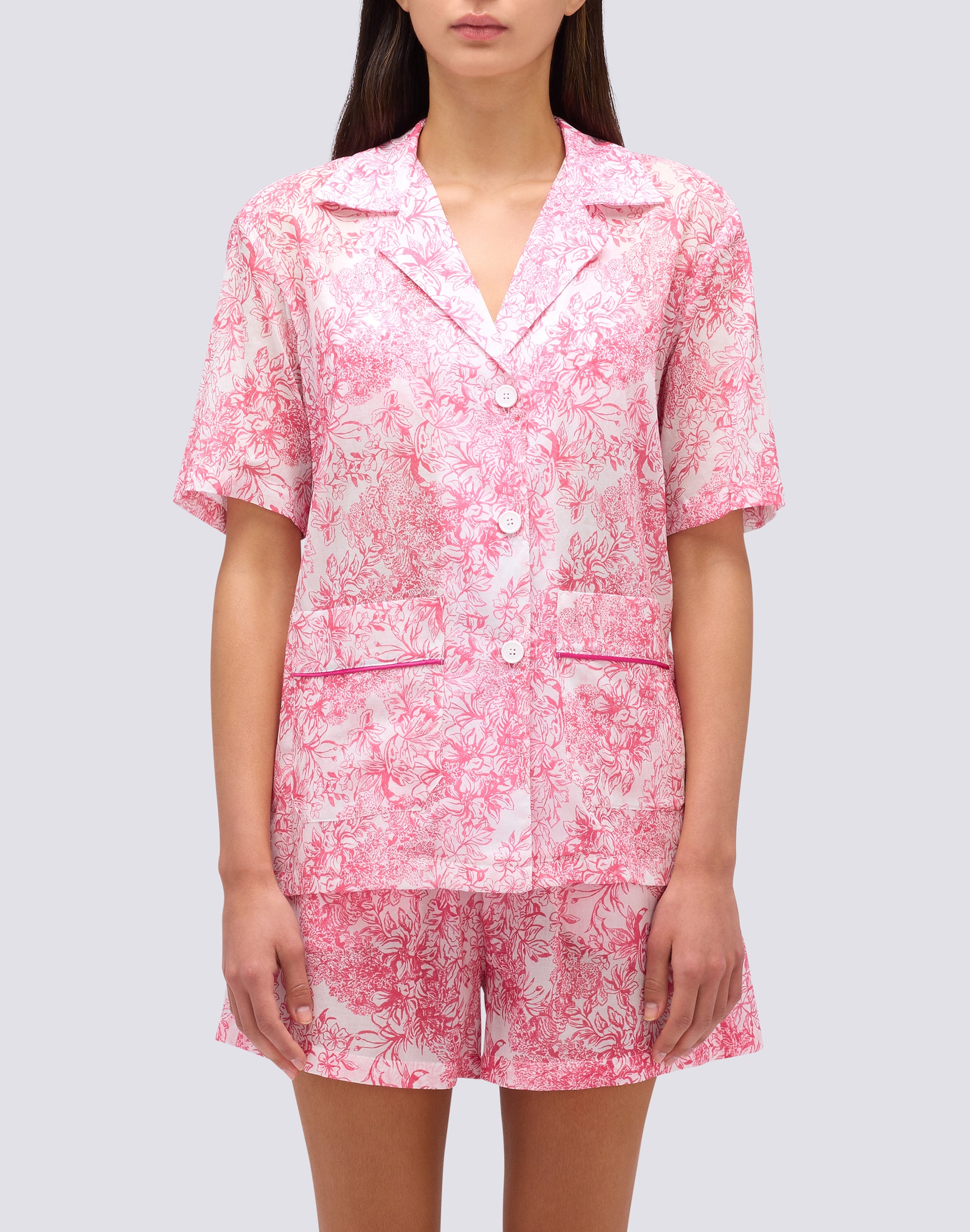 Chemise femme à motif Fleur De Joie, à associer aux bikinis ou shorts de cette collection, confectionnés dans le même motif, pour créer des looks coordonnés.