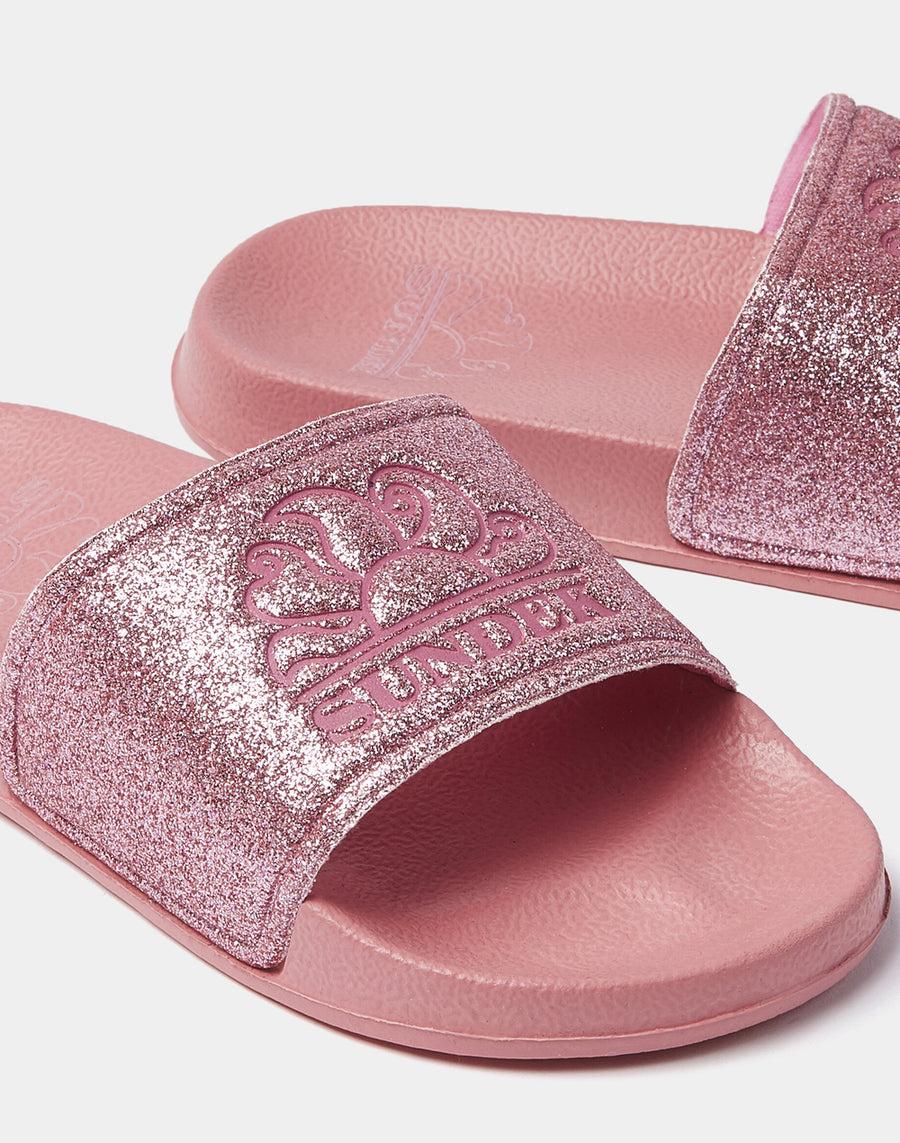 Ciabatte mare bambina super confortevoli, perfette per la spiaggia e da indossare tutta l'estate in tante occasioni diverse, con il tocco in più dello scintillante effetto glitter della fascia. Altezza suola 1 - 3 cm.