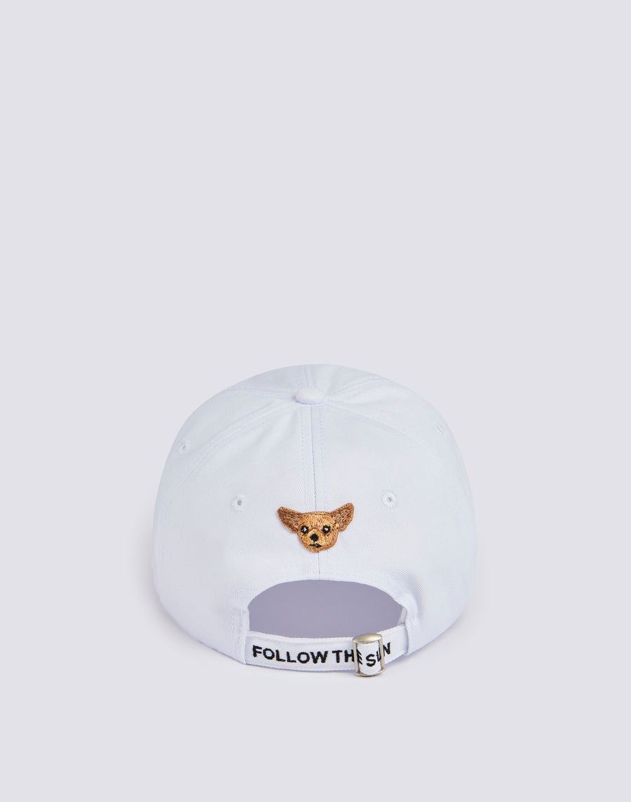 Cappello stile baseball capsule Sundek & Pelo Foundation con patch del chihuahua.