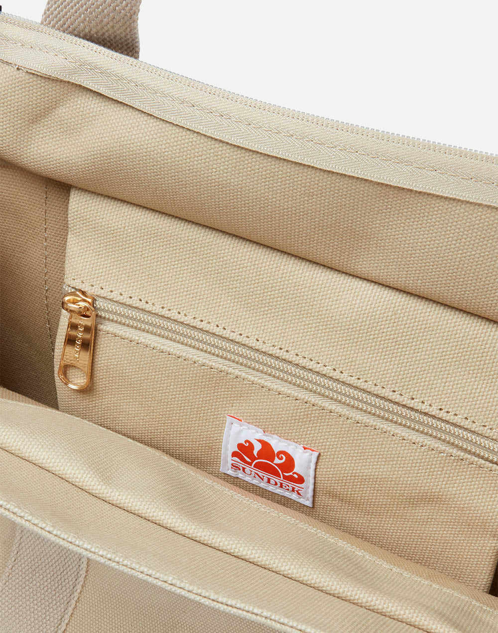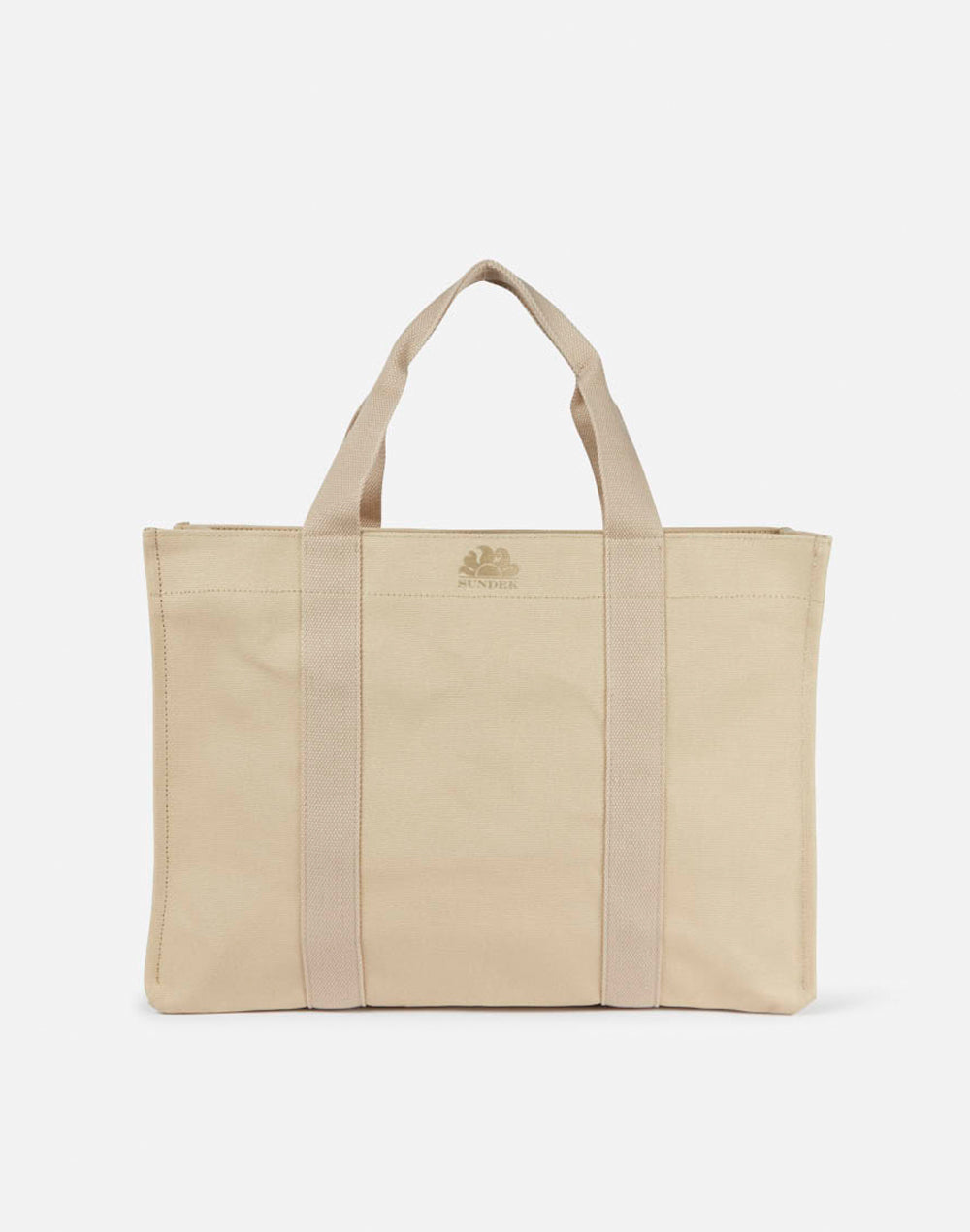 Ampia e versatile, questa canvas tote bag è perfetta da abbinare ai tuoi outfit di stagione. Modello regular.