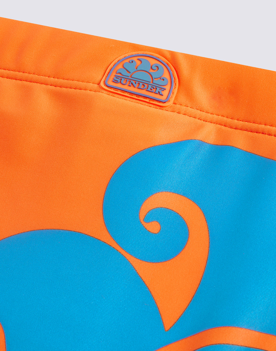 Slip mare da bambino che punta tutto sul colore e non dimentica l'ambiente, perché realizzato in nylon rigenerato ECONYL®. Caratterizzato da logo grande sul back con patch in gomma e vita elastica con coulisse per regolare l'aderenza.