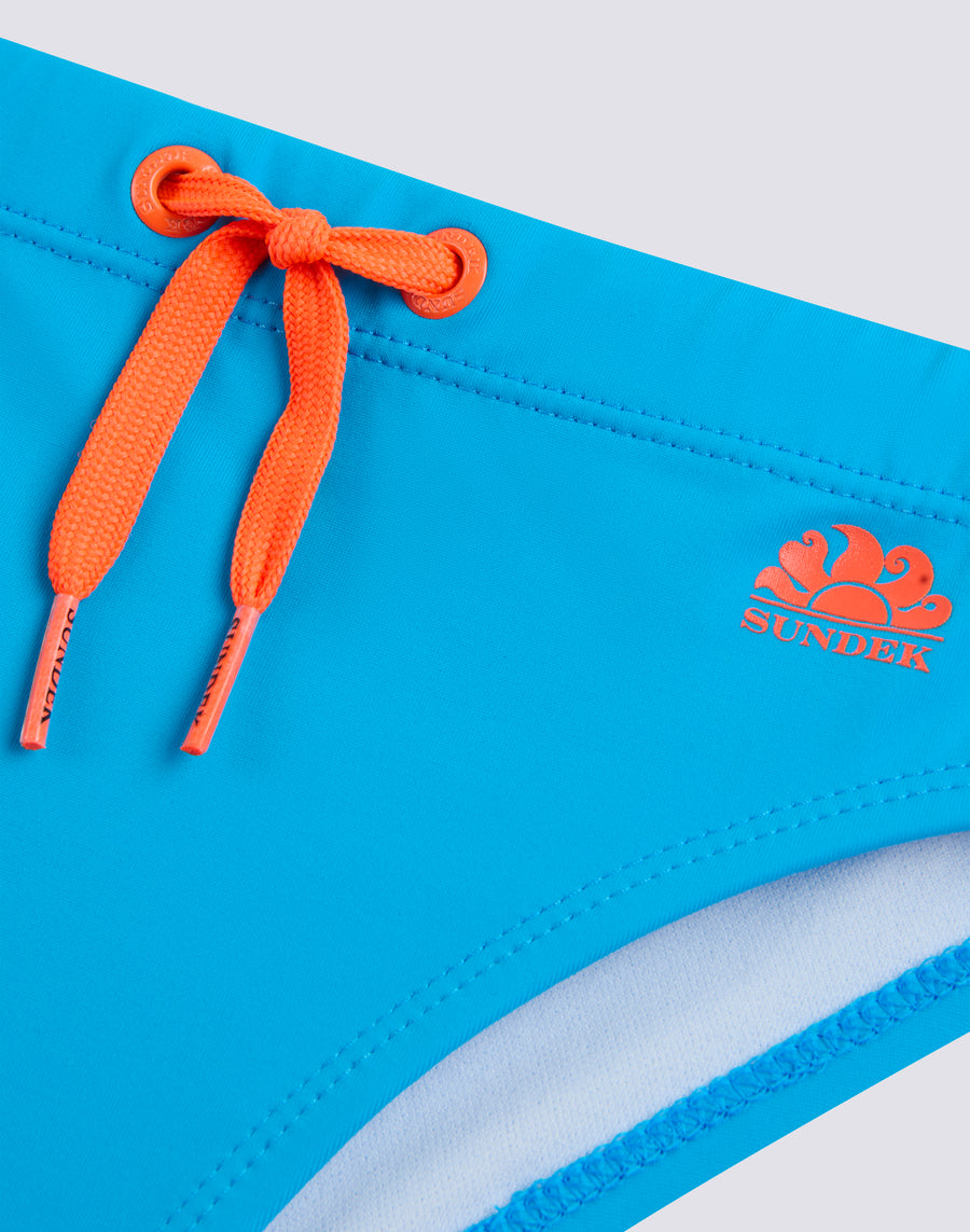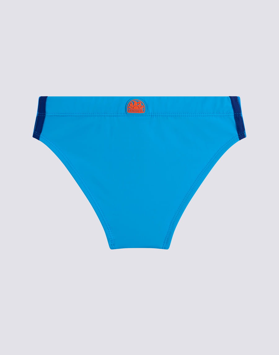 Immergiti nei colori dell'arcobaleno. Costume mare slip bambino in nylon Econyl rigenerato.