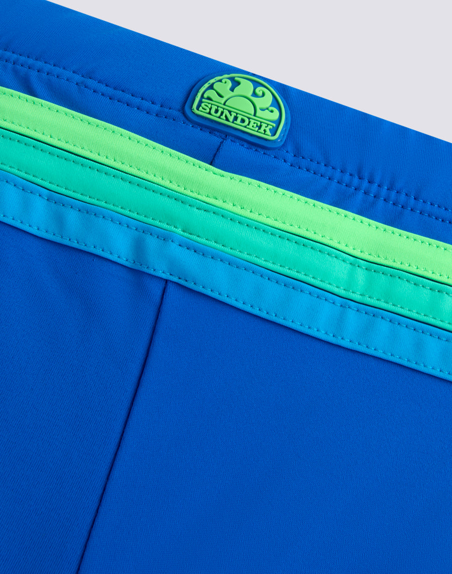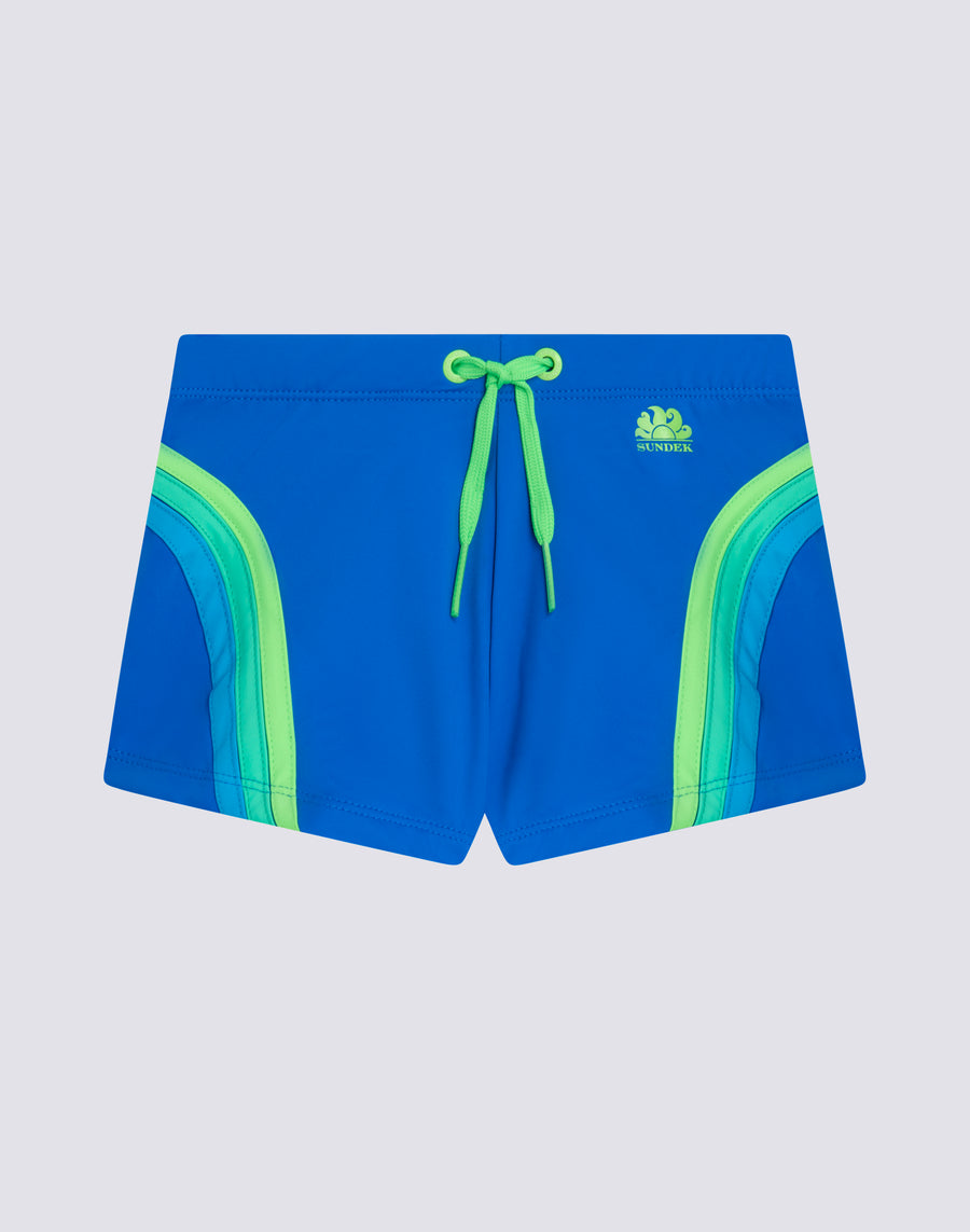 Il boxer mare da bambino che punta tutto sul colore e non dimentica l'ambiente, perché è realizzato in nylon rigenerato ECONYL®. Comodo grazie all’elastico in vita e al laccio regolabile, è il costume che il tuo bimbo potrà indossare con facilità per giocare e fare il bagno.