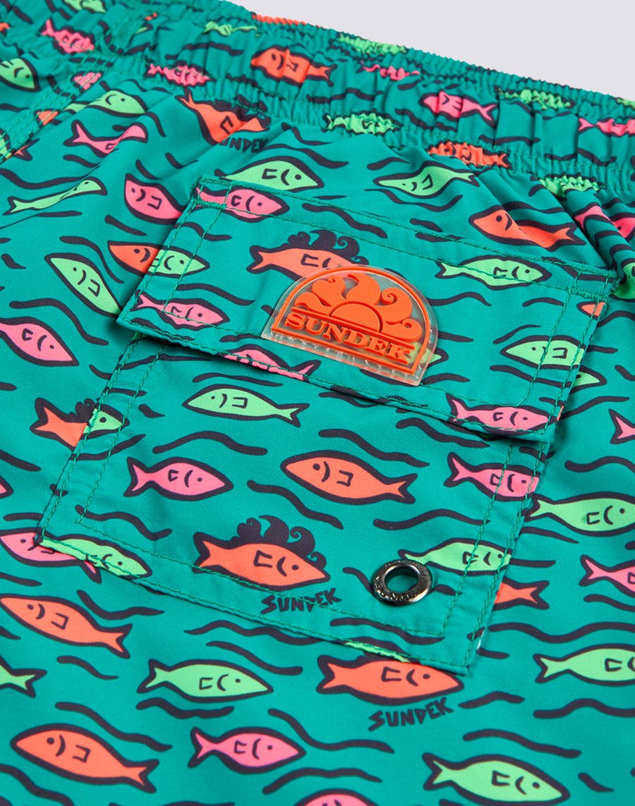 COSTUME DA BAGNO CORTO VITA ELASTICATA STAMPA FISHBALL IN POLY RICICLATO