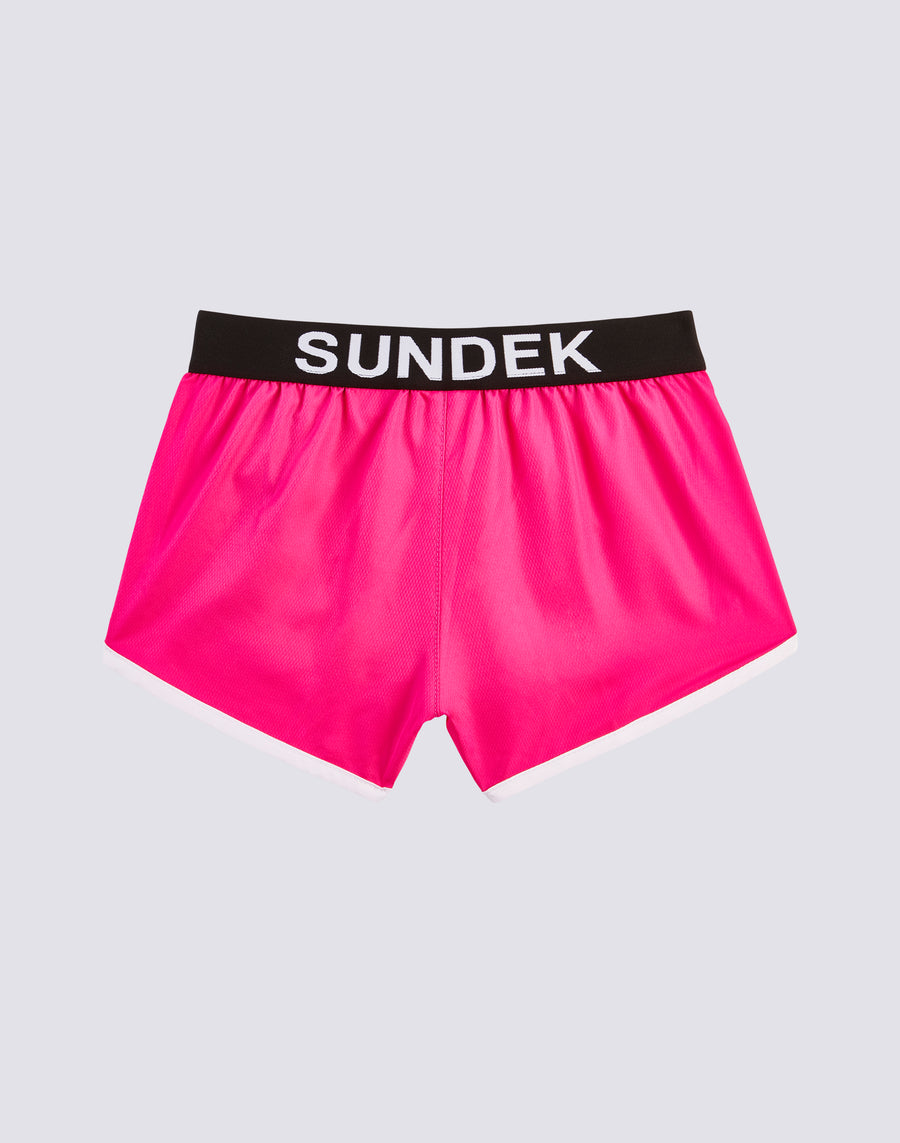 Uno shorts leggero con logo Sundek perfetto da indossare sopra il costume. Facili da infilare, dal tessuto leggero e confortevole, accompagneranno la tua bimba dalla spiaggia ai giochi estivi. Vestibilità regular. Lunghezza 16 cm (taglia 6) misurati sul lato esterno.