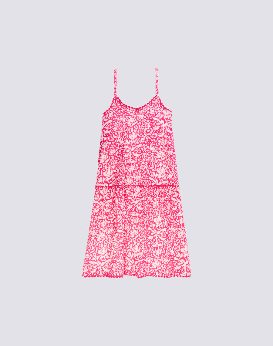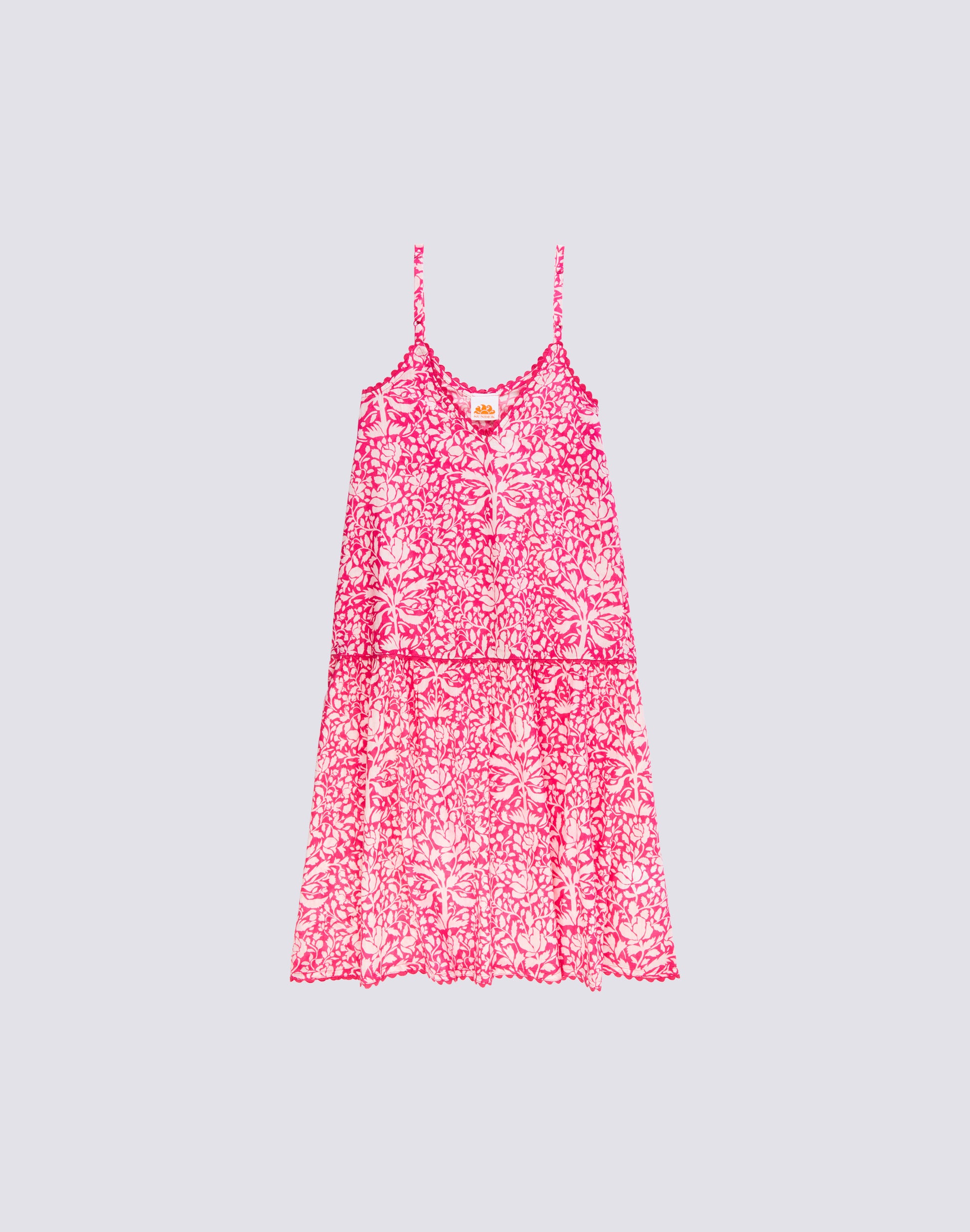 Elegante abito lungo da bambina con spalline regolabili e dettaglio piping. La stampa floreale aggiunge un tocco romantico. Perfetto per un look raffinato e sofisticato. Abbinalo con quello da donna per un perfetto look mini me