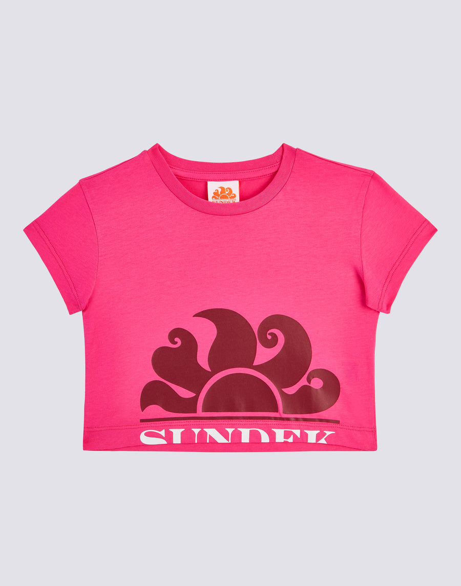 T-shirt bambina crop da indossare sopra jeans o gonne. Modello immancabile per il guardaroba della tua bambina