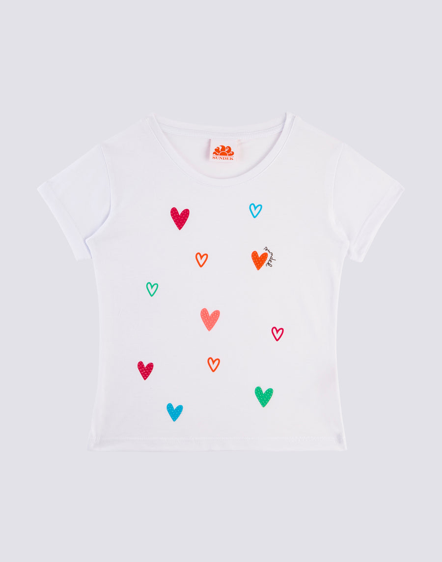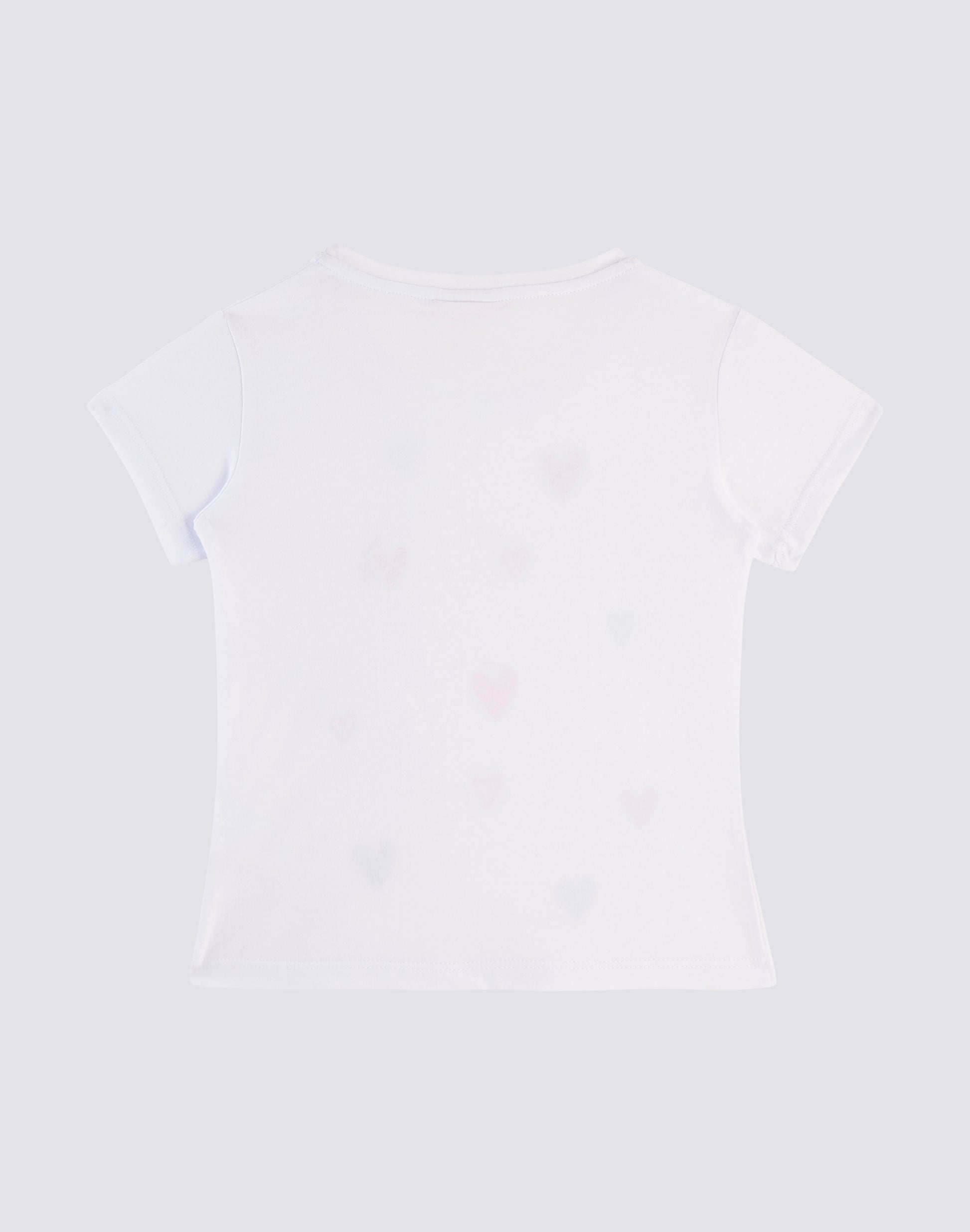 T-shirt da bambina in cotone con stampa a cuori. Vestibilità regular, comfort ottimale per i momenti di gioco.