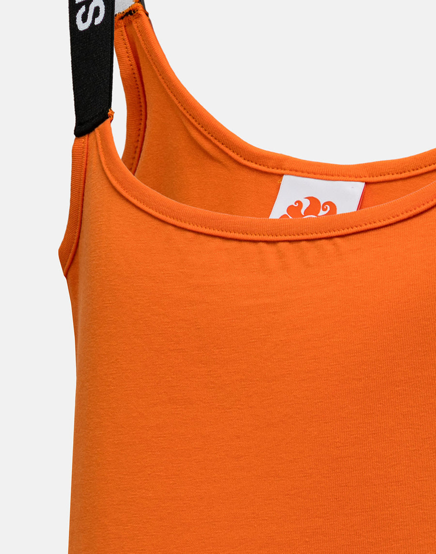 Morbido jersey, linea cropped versatile e spalline con logo a contrasto. Questo top è adatto in vacanza e in città, sopra a pantaloni, shorts o denim. Lo puoi abbinare anche ai leggings in coordinato.