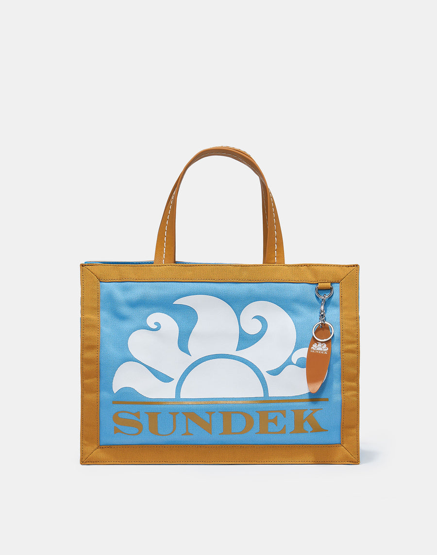 Borsa medium a mano in canvas con logo Sundek stampato. Charm con la caratteristica forma di tavola da surf.