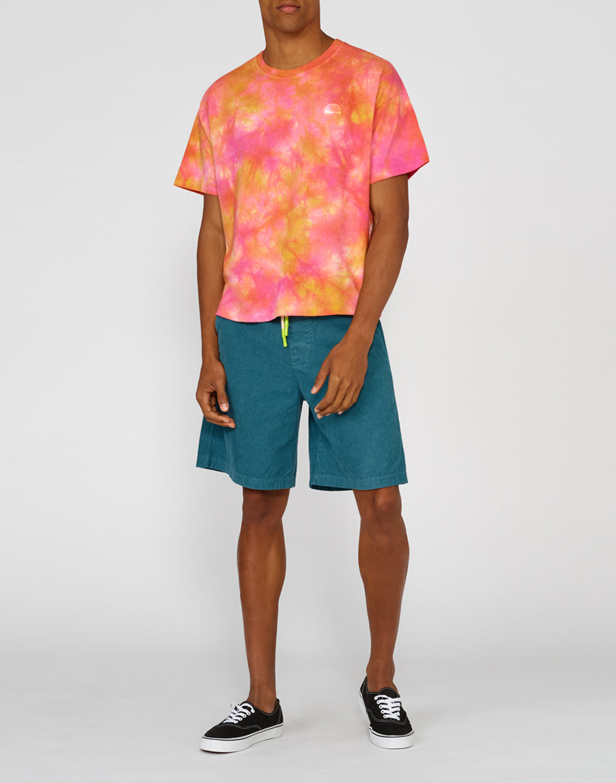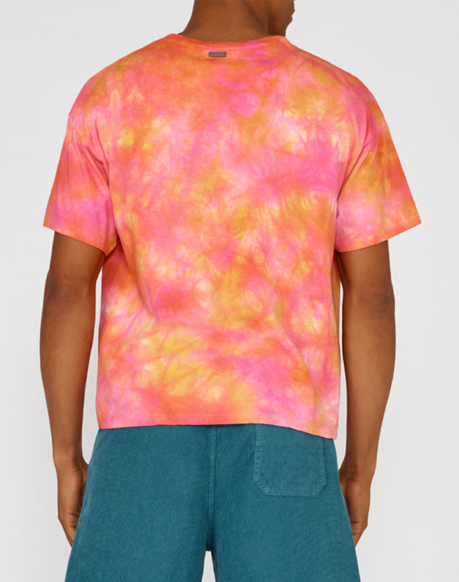 Stile casual e suggestioni di colore per questa t-shirt uomo in jersey di cotone con lavorazione tie-dye, una particolare tecnica di colorazione dei tessuti.