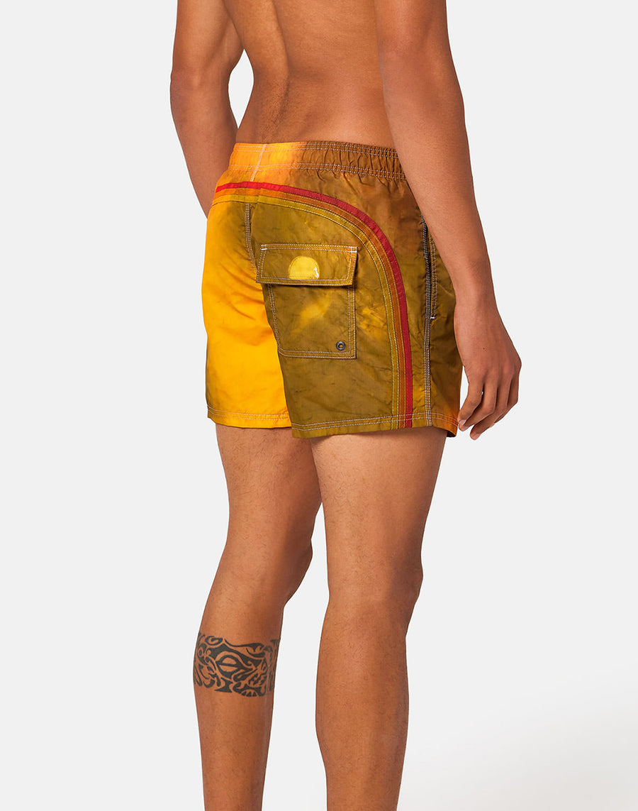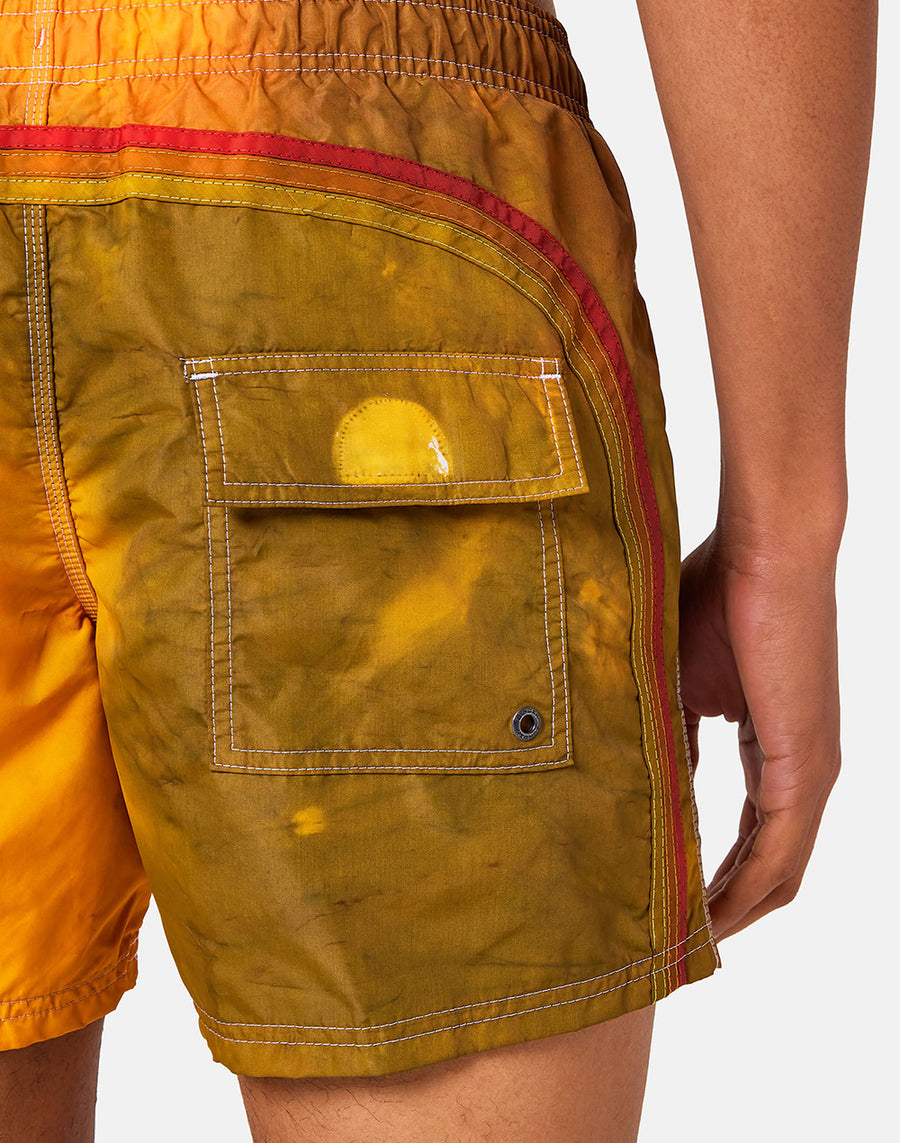 Boardshort con speciale lavorazione tie-dye, trattato e tinto con tecniche artigianali. Il tessuto storico e la costruzione del modello lo rende super resistente stagione dopo stagione.