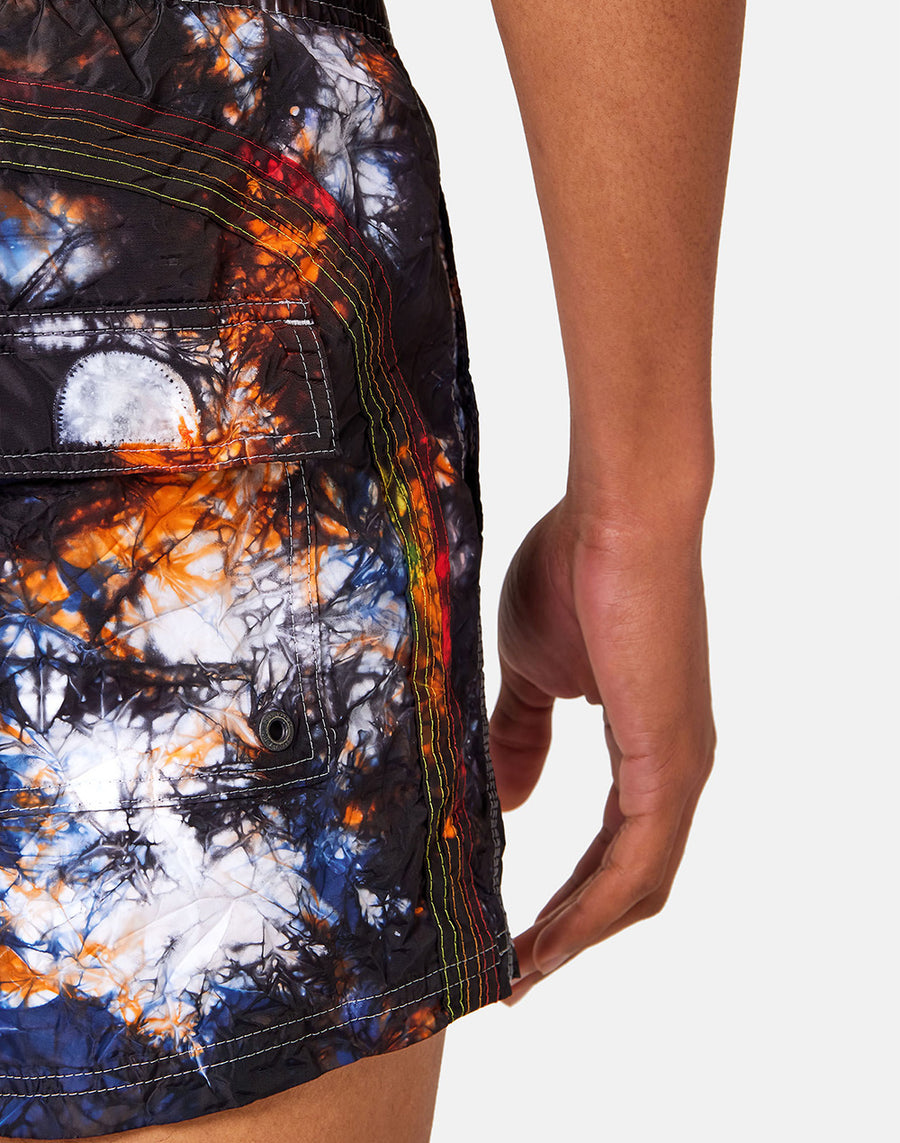 Boardshort con speciale lavorazione tie-dye, trattato e tinto con tecniche artigianali. Il tessuto storico e la costruzione del modello lo rende super resistente stagione dopo stagione.