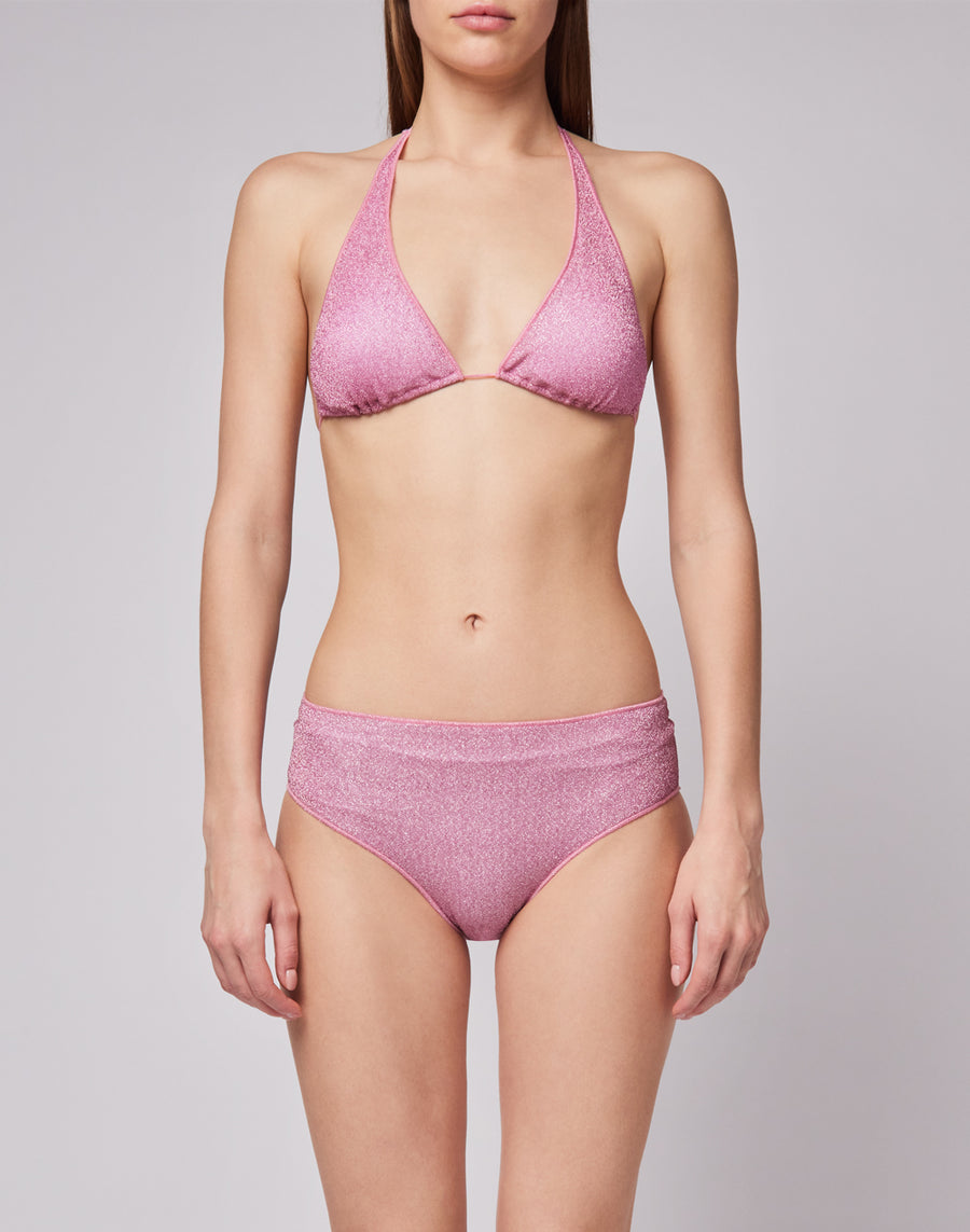 Top a triangolo americano in lurex con lacci regolabili. Scintillante e glamour, da indossare con il suo slip in coordinato.