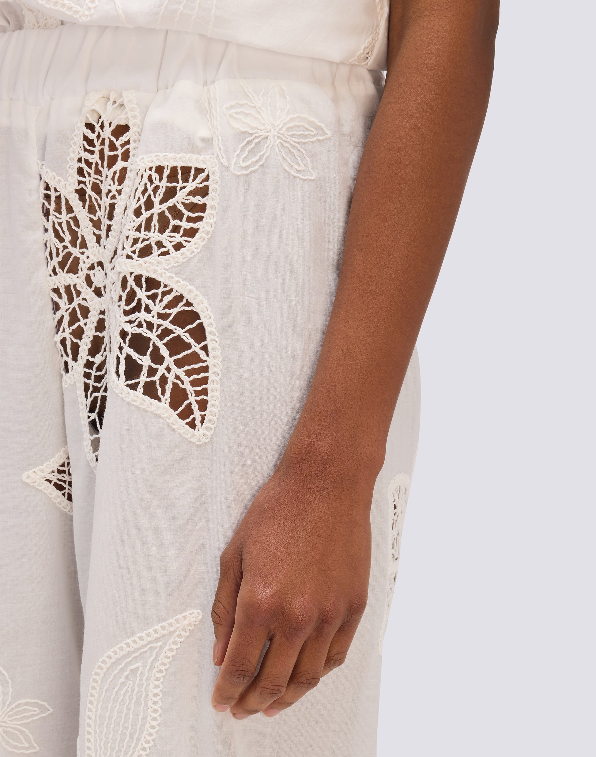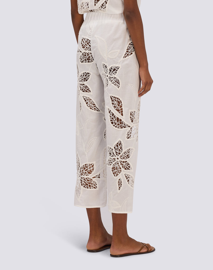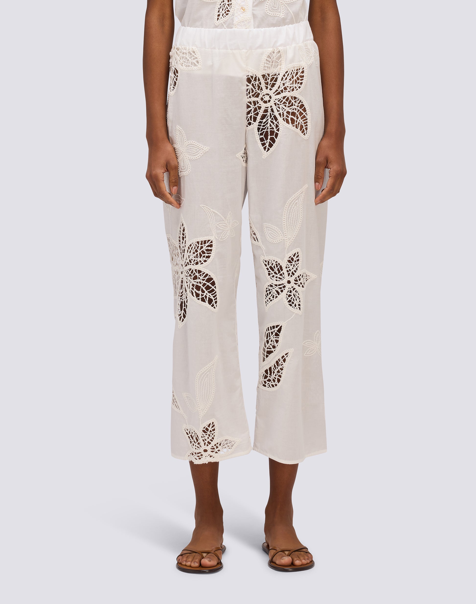 PANTALONI LUNGHI DONNA IN SANGALLO CON VITA ELASTICATA
