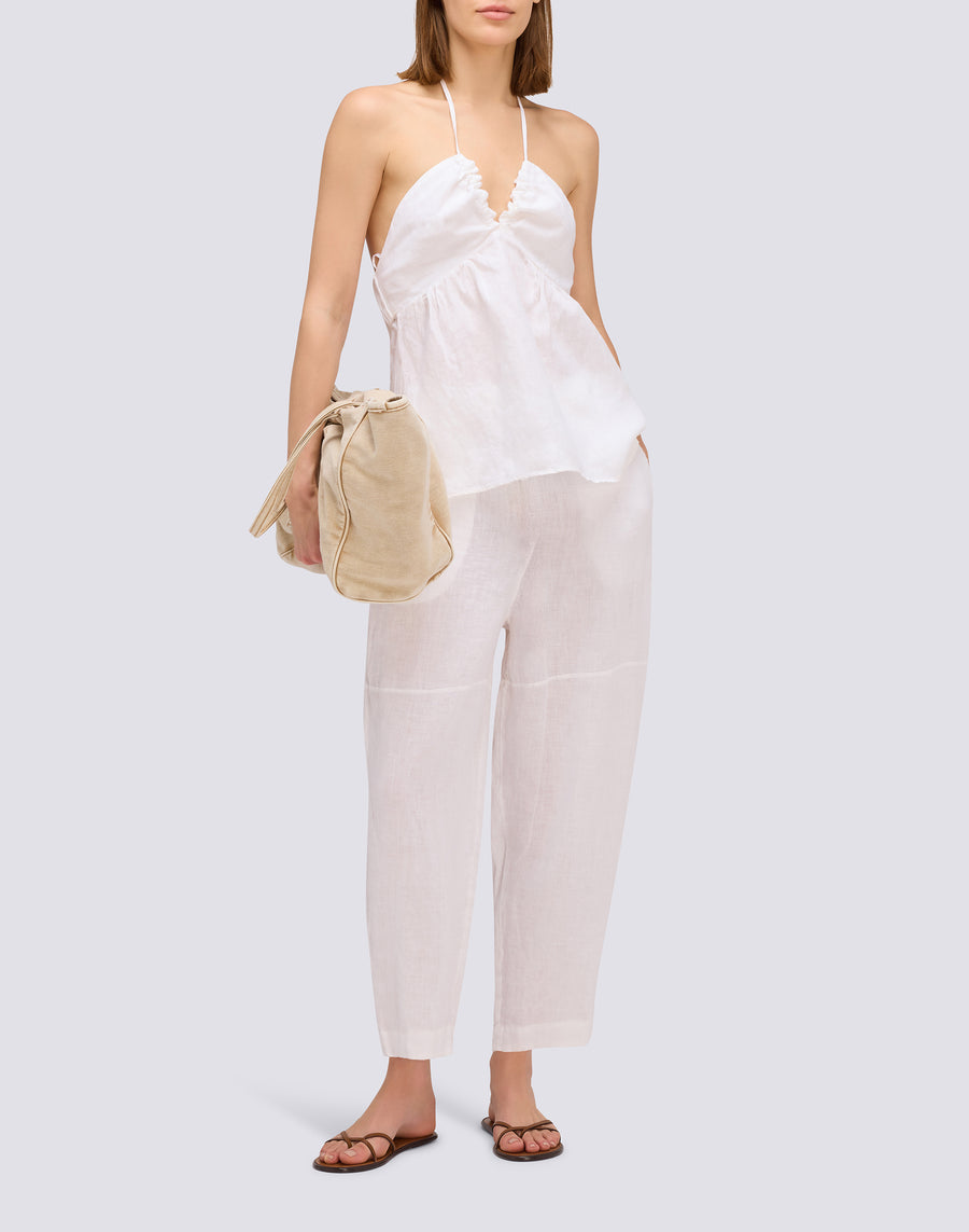 PANTALONI LUNGHI IN LINO CON VITA ELASTICIZZATA REGOLABILE