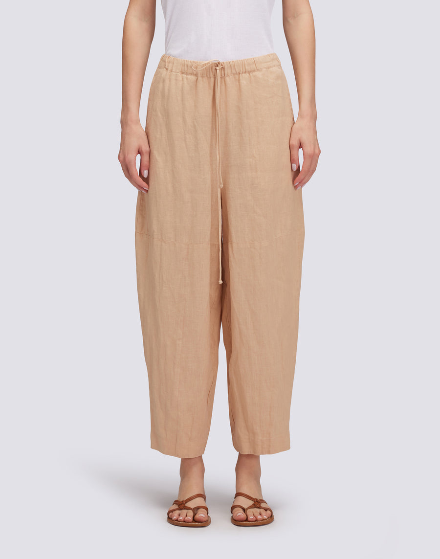 PANTALONI LUNGHI IN LINO CON VITA ELASTICIZZATA REGOLABILE