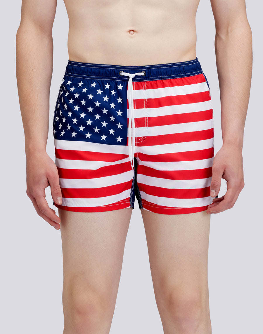COSTUME DA BAGNO CORTO VITA ELASTICATA POLIESTERE RICICLATO REPREVE® BANDIERA STATI UNITI