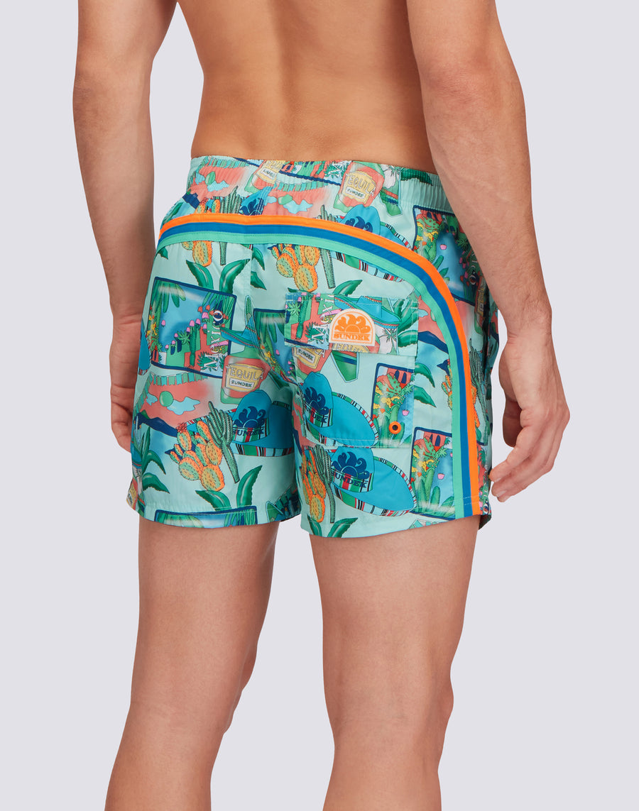 COSTUME DA BAGNO CORTO VITA ELASTICATA REPREVE® CON STAMPA GREETINGS FROM MEXICO