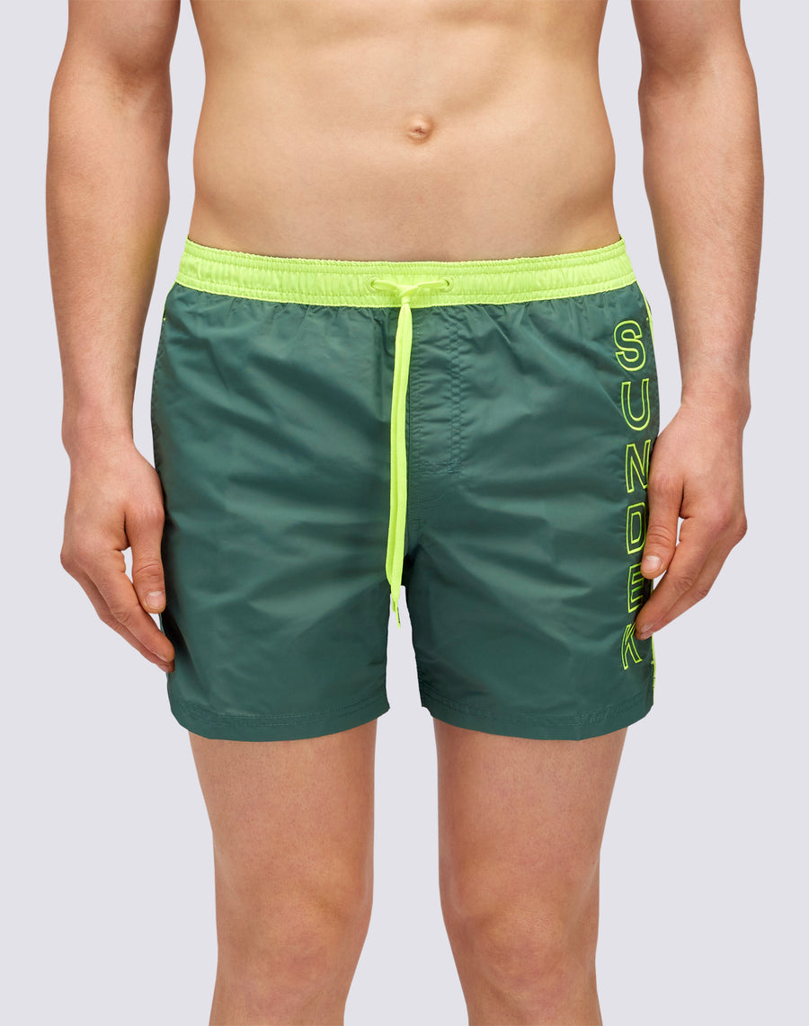 Rinfresca il tuo guardaroba beachwear con questo costume corto a pantaloncino, perfetto per le tue giornate in spiaggia o in piscina. Con il tessuto elasticizzato e il piping a contrasto, questo costume da bagno da uomo garantisce un look iconico durante tutta l'estate.