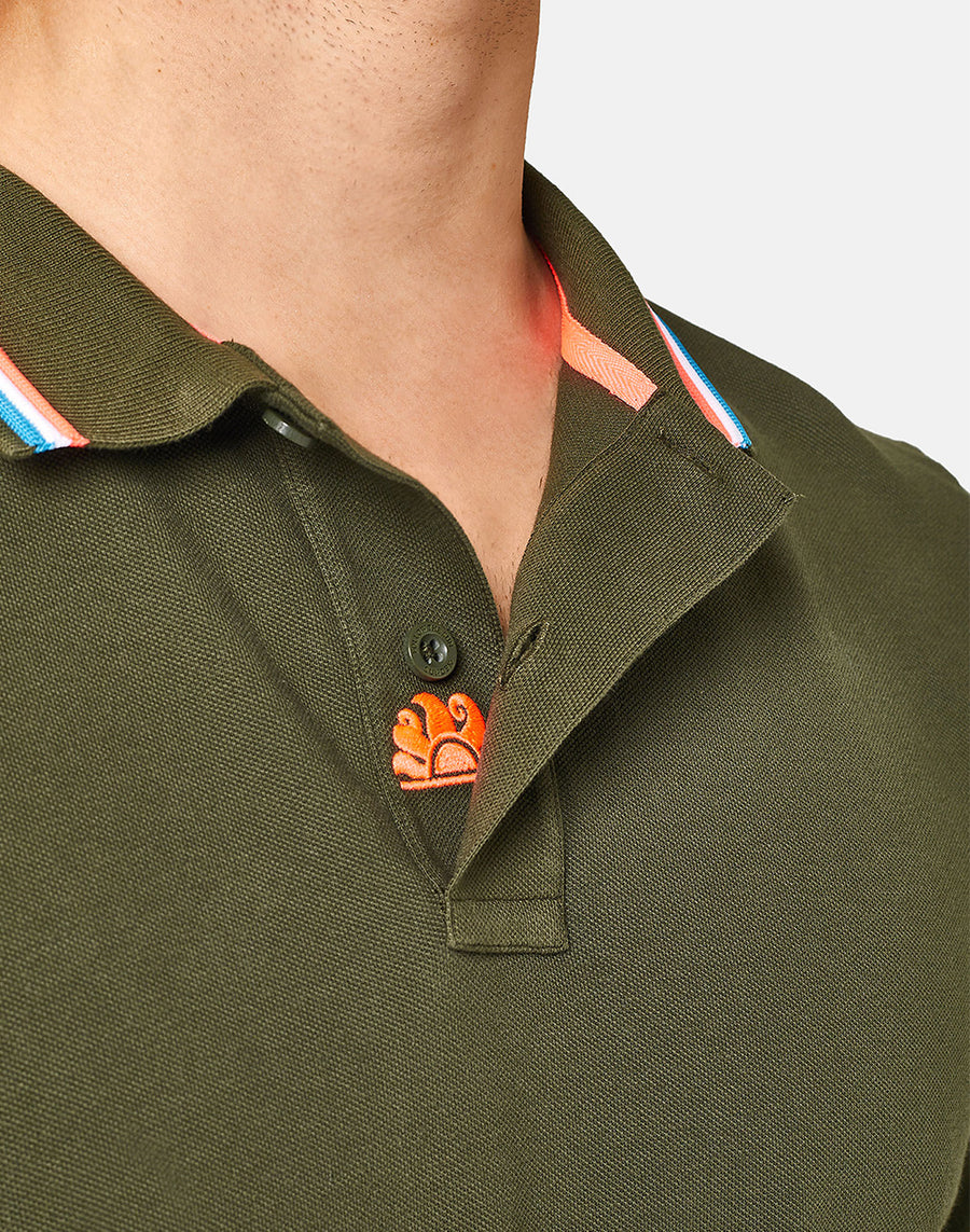 Punta tutto sui dettagli la polo da uomo con colletto e fondo manica dettagliati dalle iconiche bande tricolor, firma di Sundek. Perfetta da abbinare a denim, pantaloni casual e bermuda, dando un tocco di personalità agli outfit.