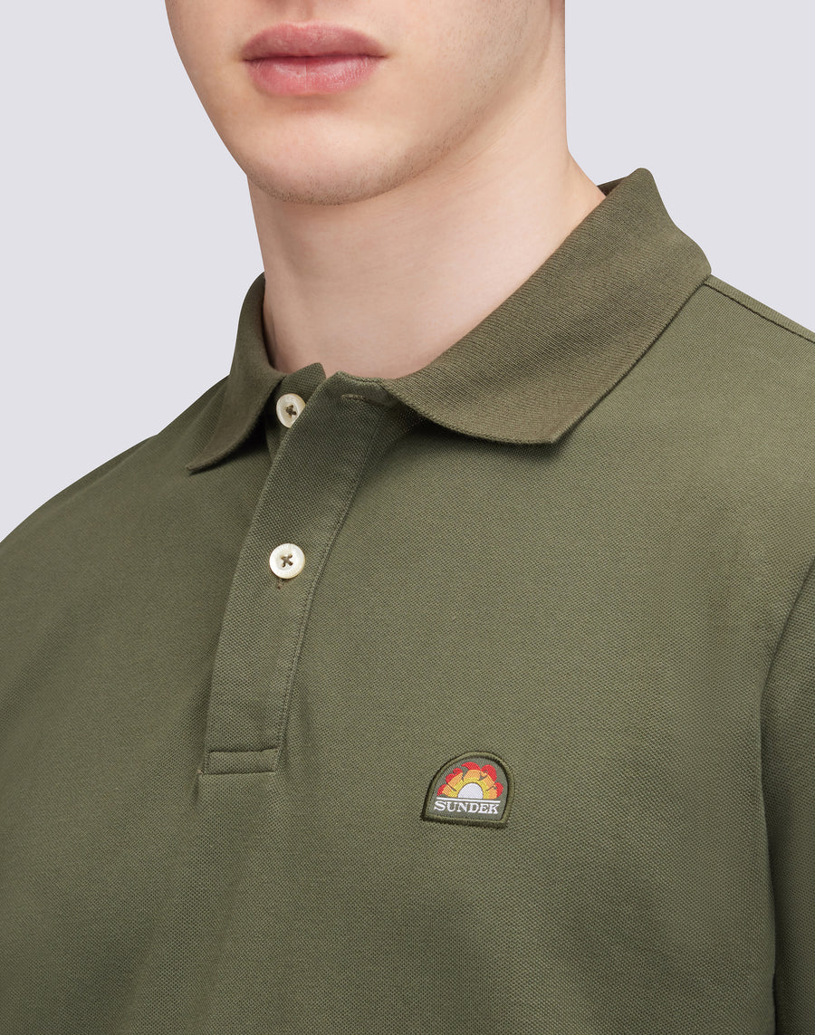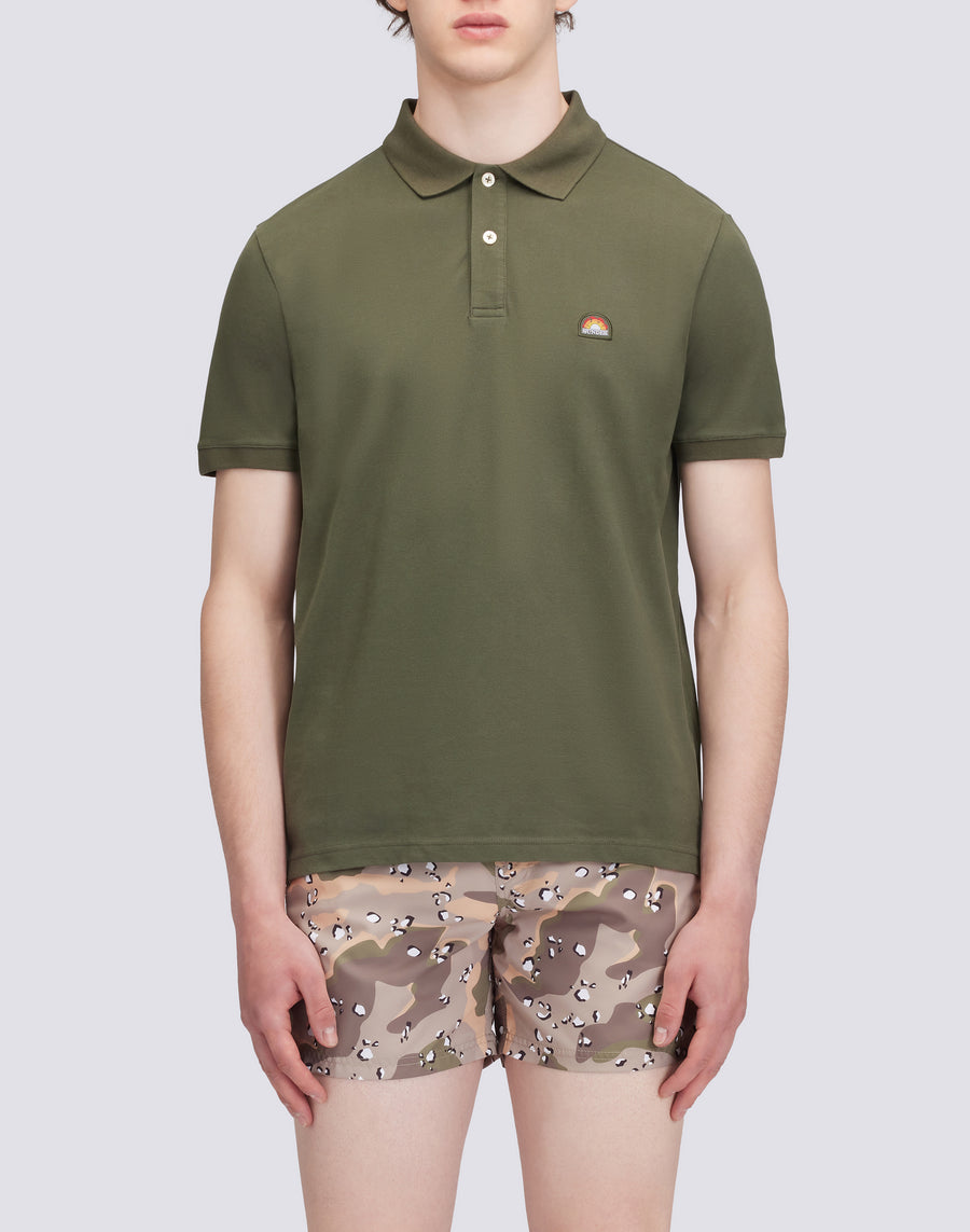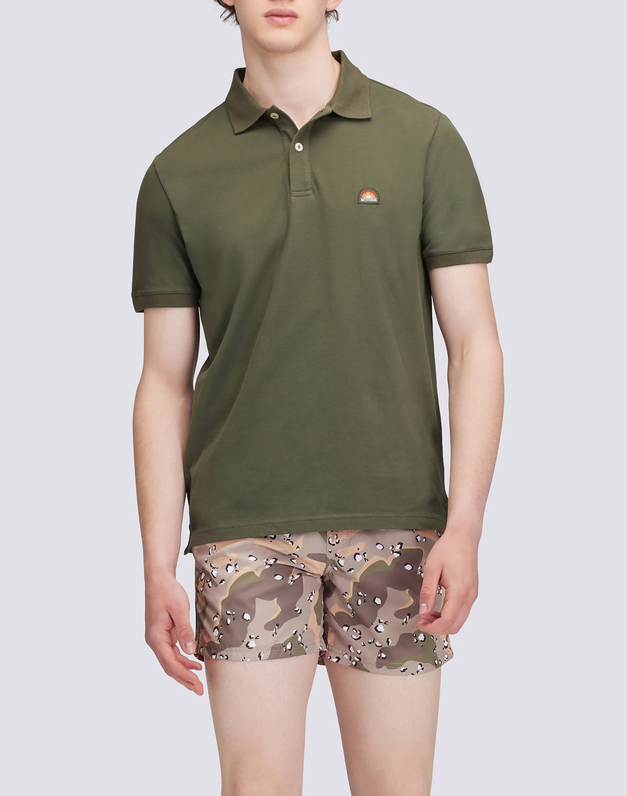 POLO IN COTONE PIQUET STRETCH CON PATCH ARCOBALENO