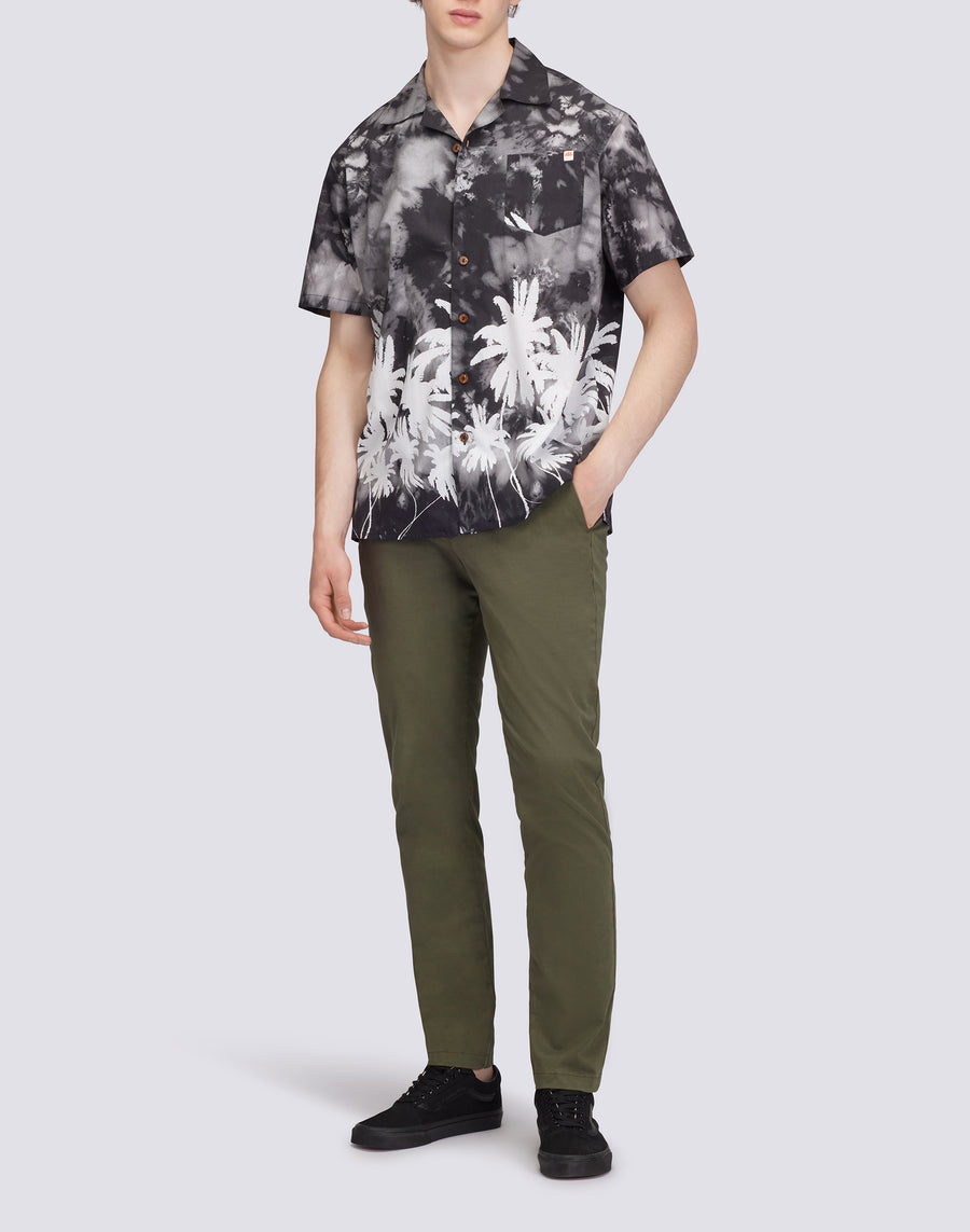 Camicia da uomo modello bowling stampata a maniche corte, in cotone.