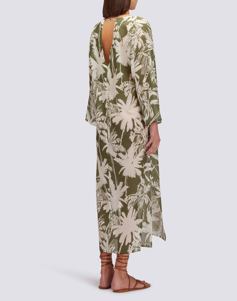 ABITO LUNGO IN COTONE VOILE CON STAMPA TROPIC SAVANA
