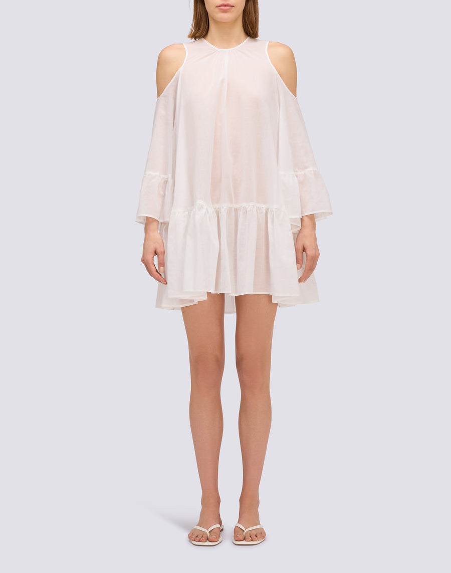ABITO CORTO CON SPALLE SCOPERTE IN VOILE DI COTONE