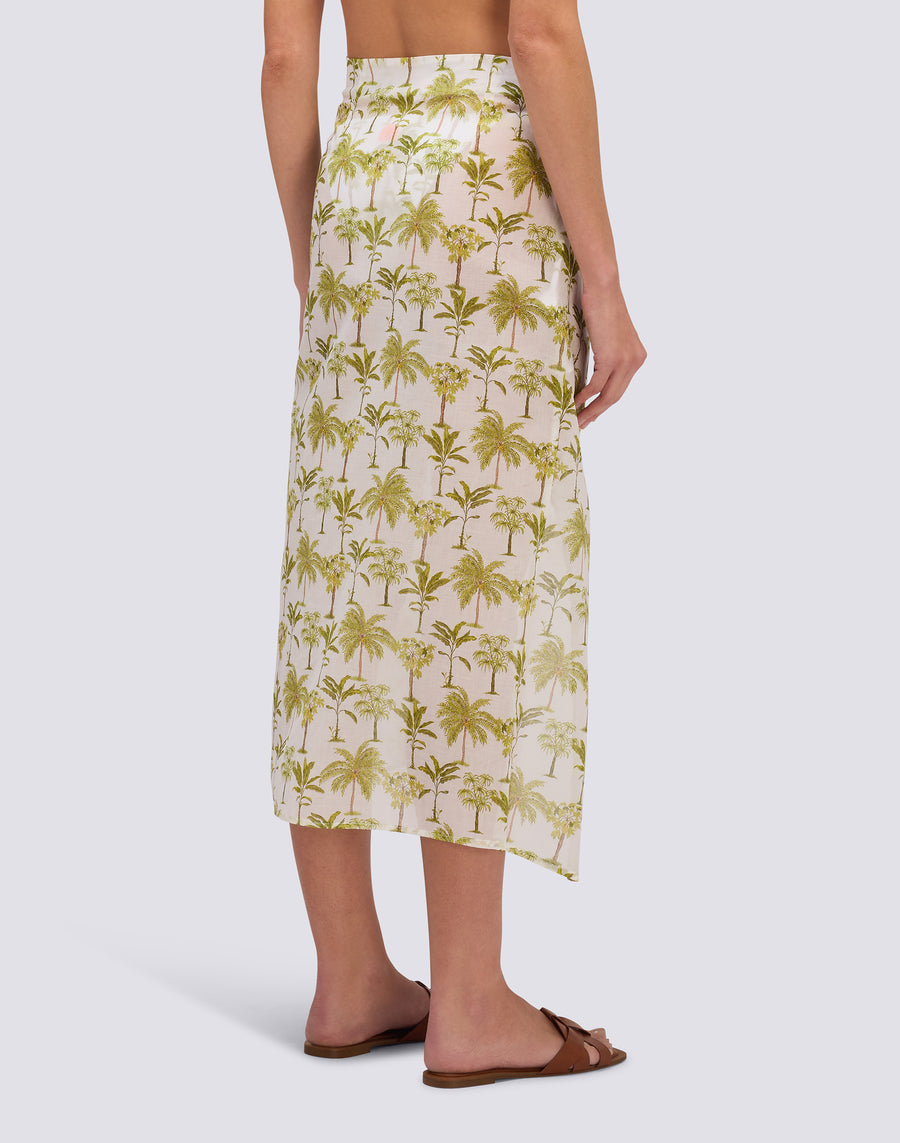 Pareo lungo in voile di cotone con fantasia botanic con dettaglio fiocco anteriore. Da indossare in coordinato coi set bikini della stessa fantasia o separato, con un bikini basico, per dare vita a look da spiaggia mai banali.