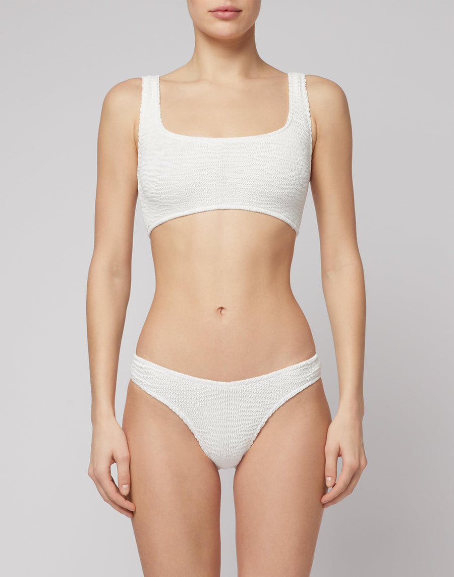 Slip sgambato a vita alta in tessuto groffato tubolare, che assicura libertà di movimento e massimo comfort. Abbinabile al top in coordinato, venduto separatamente.
