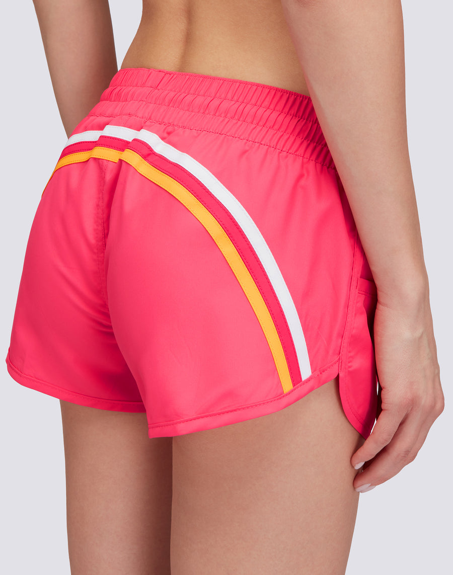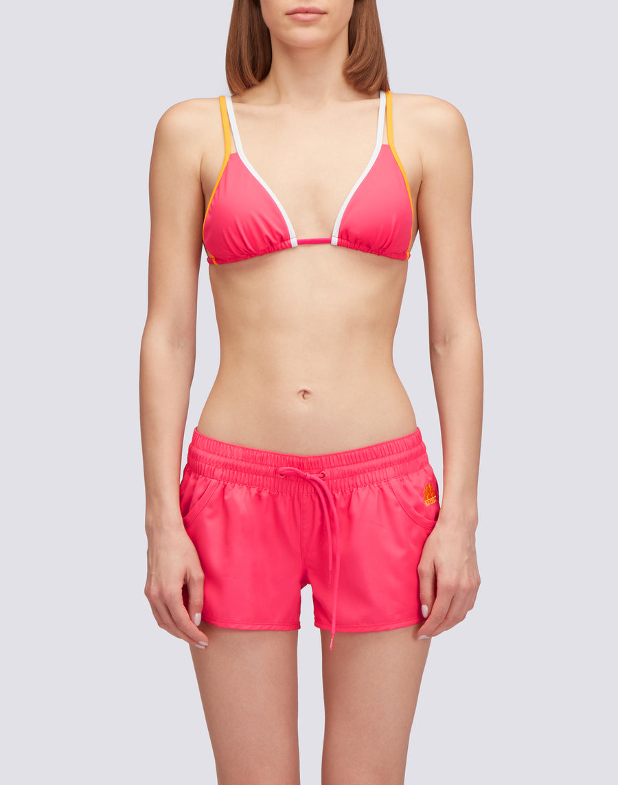 Realizzato in tessuto eco-friendly Repreve®, questo costume a pantaloncino da donna è disponibile in vari colori, Il retro è caratterizzato dall'inconfondibile arcobaleno Sundek, per uno stile unico.