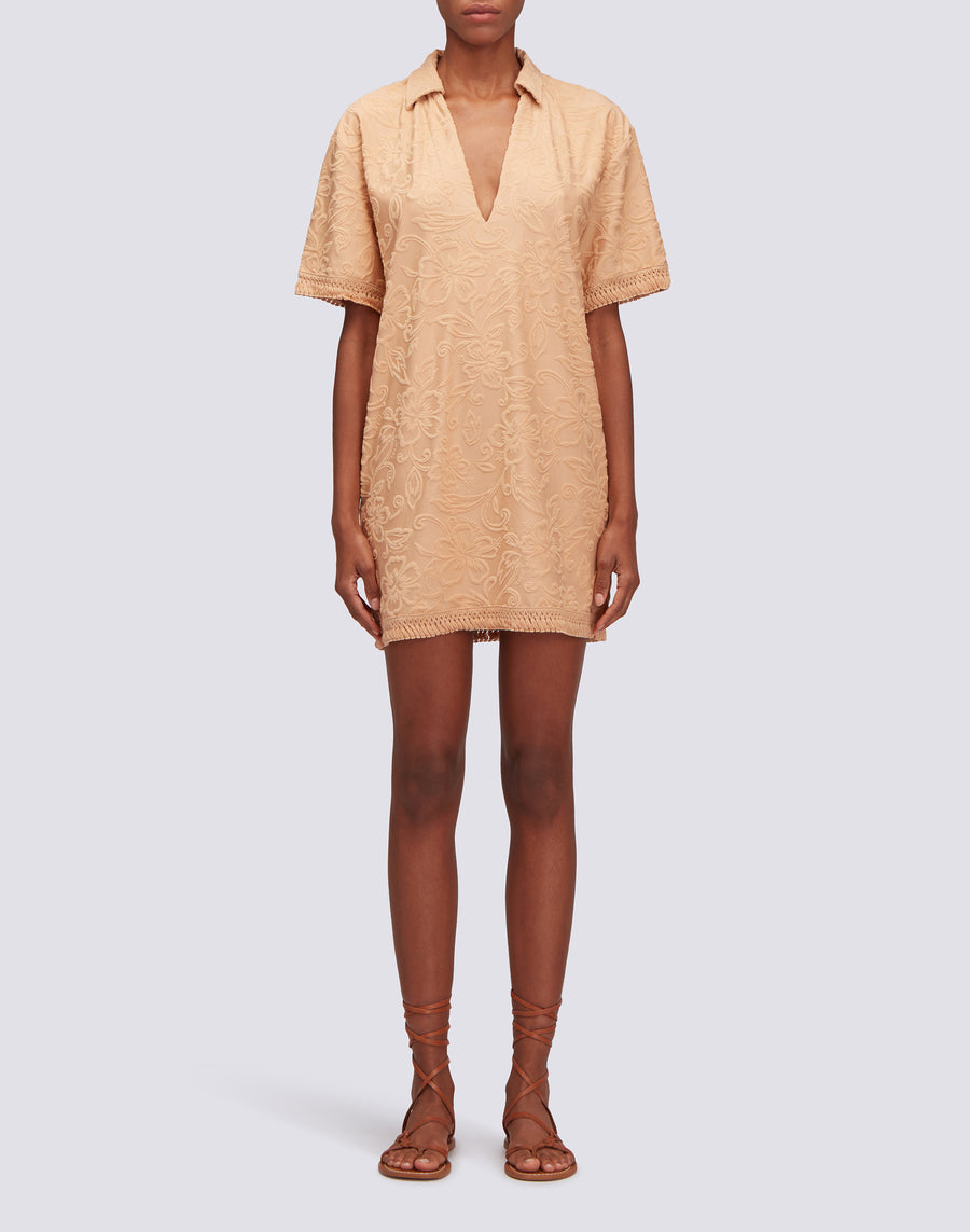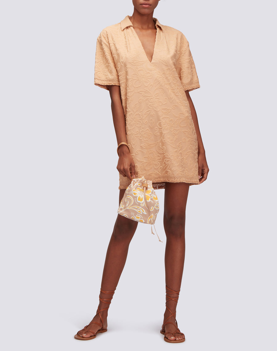 ABITO CORTO CON FRANGE IN SPUGNA JACQUARD
