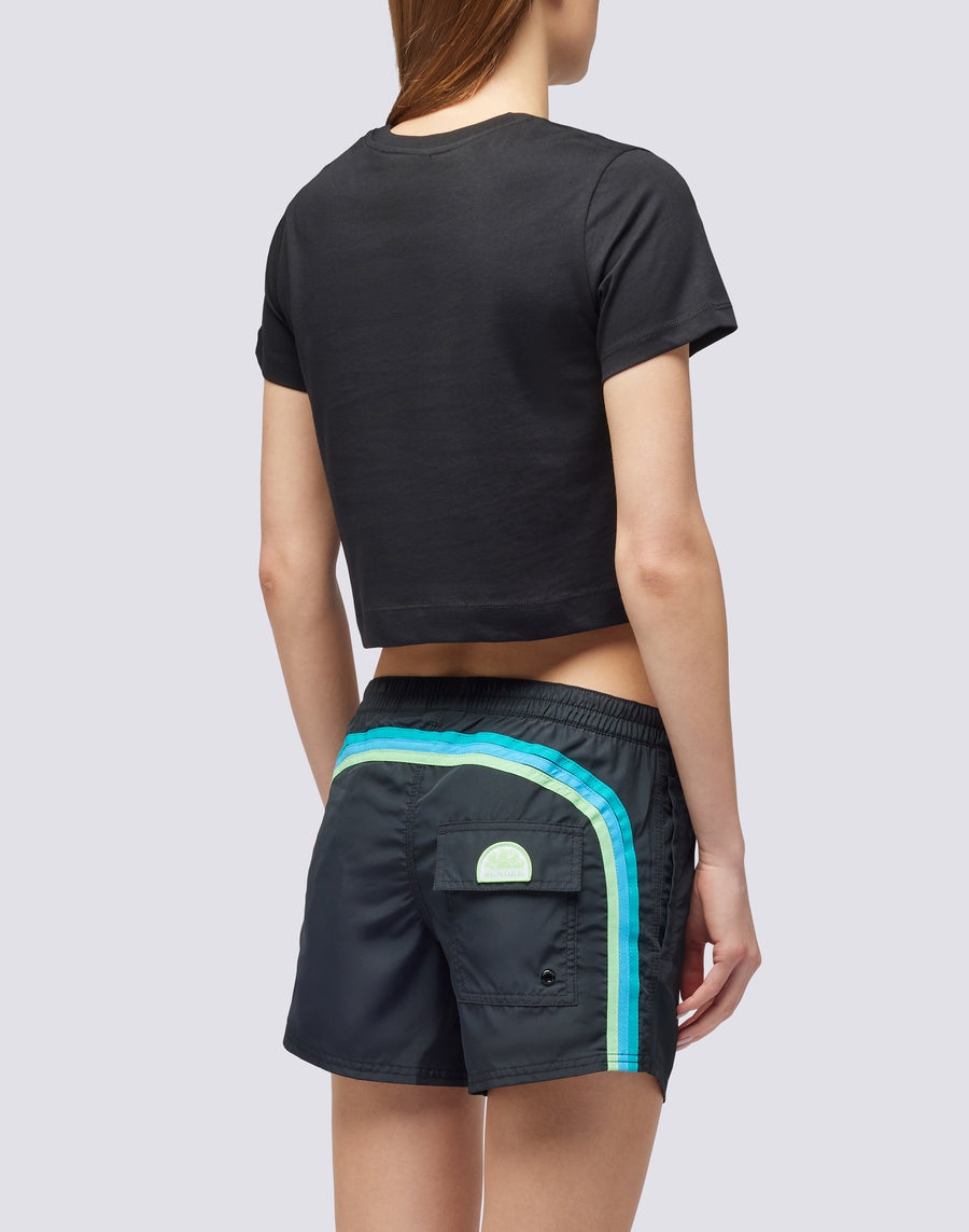T-shirt donna taglio crop da indossare sopra jeans o gonne. Capo immancabile per i tuoi outfit della Primavera Estate.