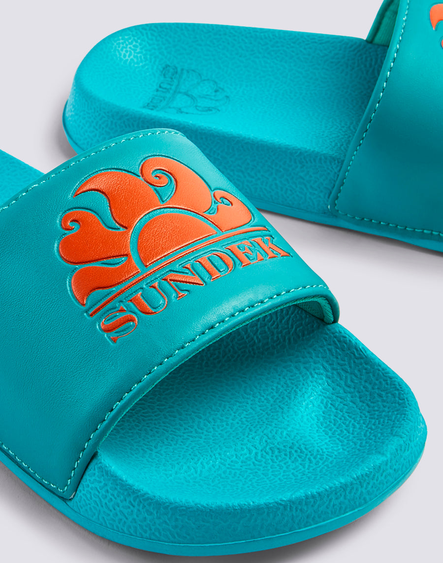 Costa bandeau slippers for children, rubberized and with a comfortable fit. They are characterized by the contrasting Sundek logo print on the band and the sole height of 2.5 cm.