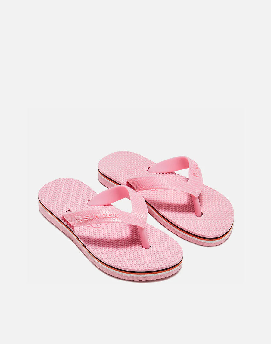 Perfect for speedy beach outfits, these girls' flip-flops are finished with multicoloured trim around the soles. The timeless design radiates summer vibes. Finished with fun tricolour details in the soles, these beach flip-flops are a must-have for kids a