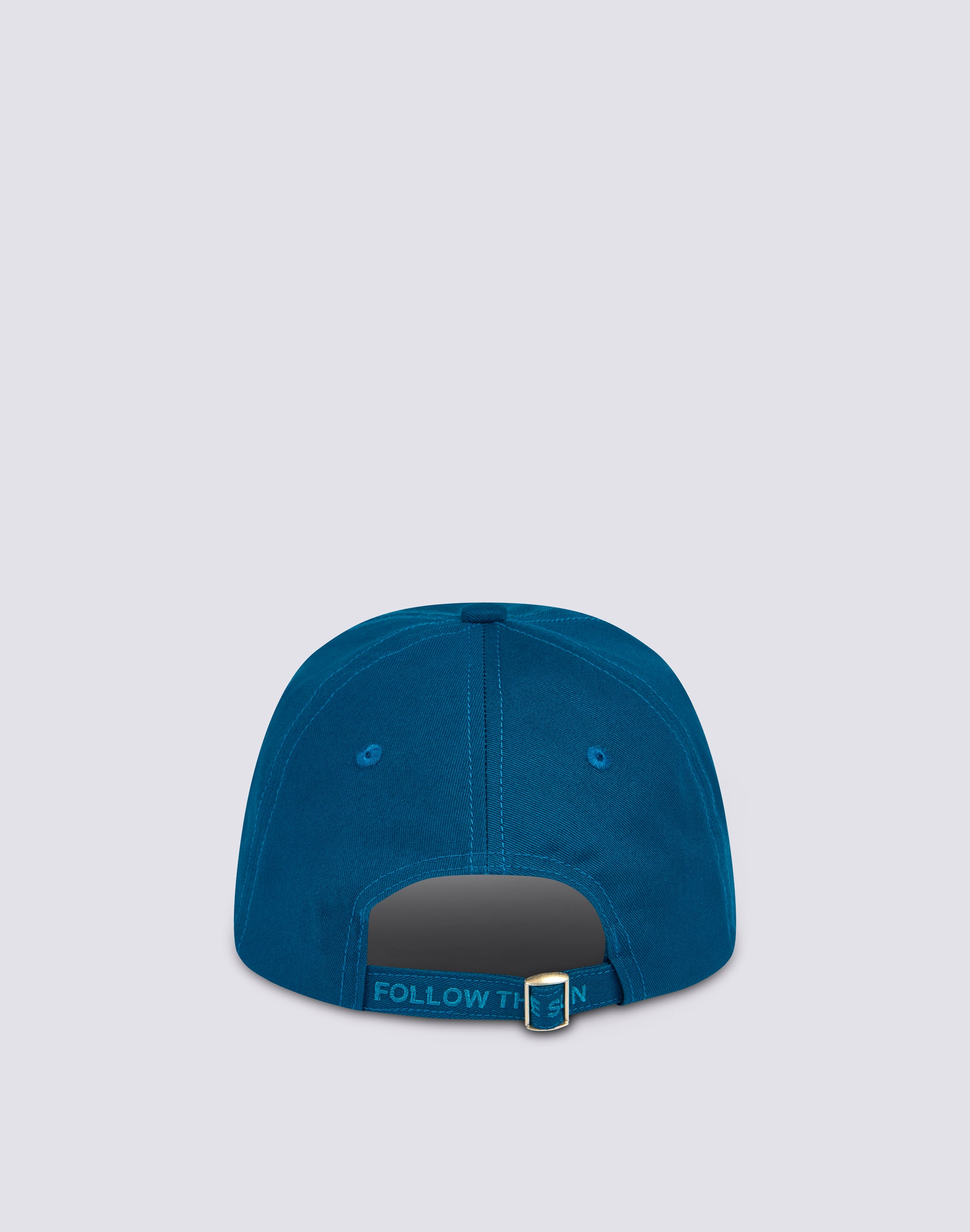 Back closure with adjustable strap and FOLLOW THE SUN writing