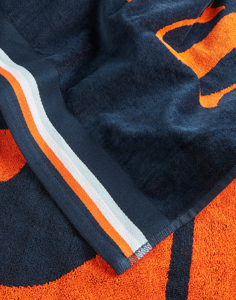 Finished with a large logo and rainbow trim, this soft beach towel will bring a splash of vibrant colour to all your holiday activities.