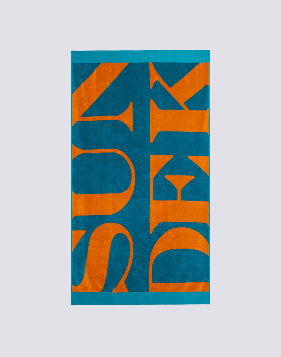 Express your passion for Sundek with this jacquard toweling beach towel with contrasting maxi logo. An eye-catching graphic touch perfect for your relaxation.