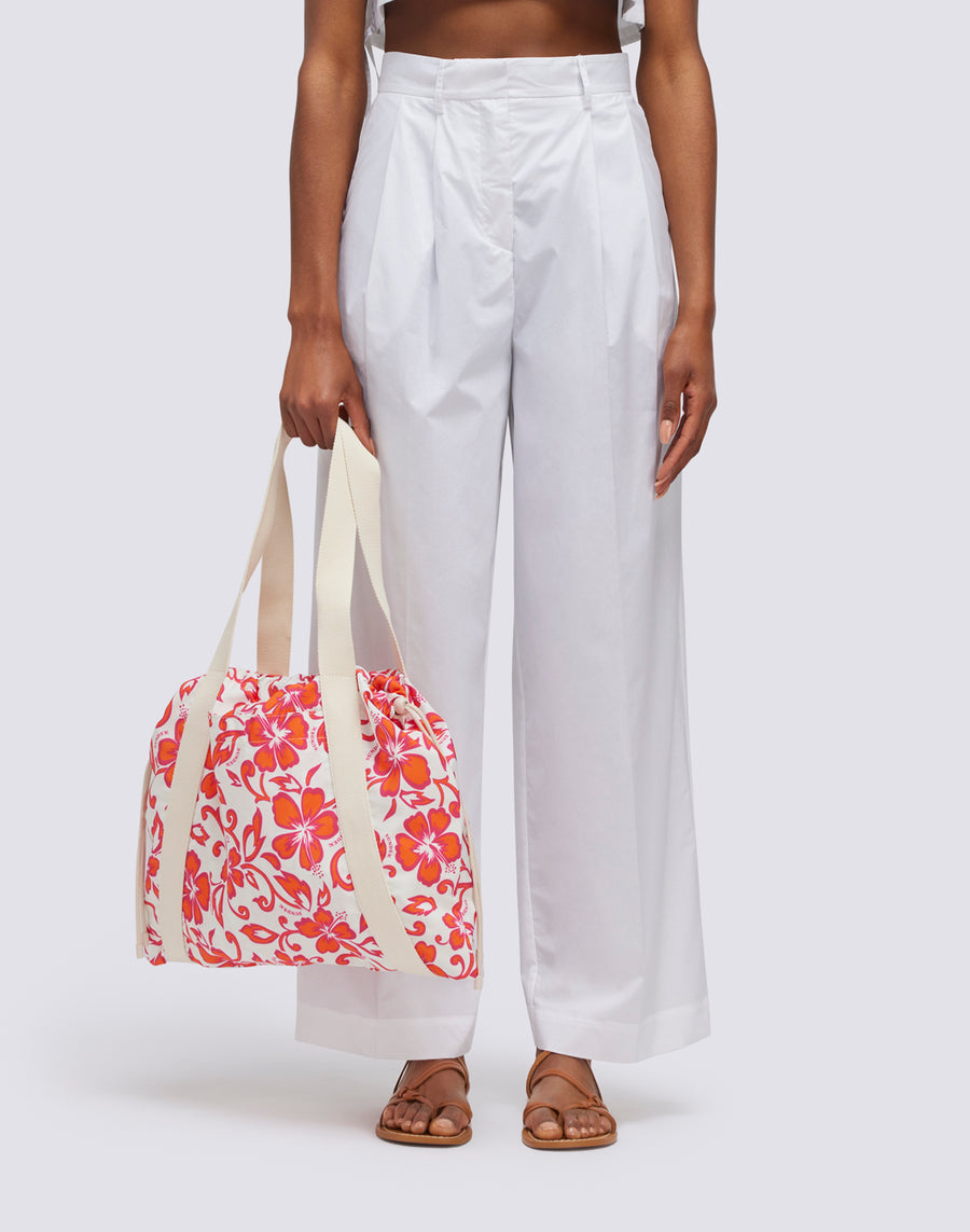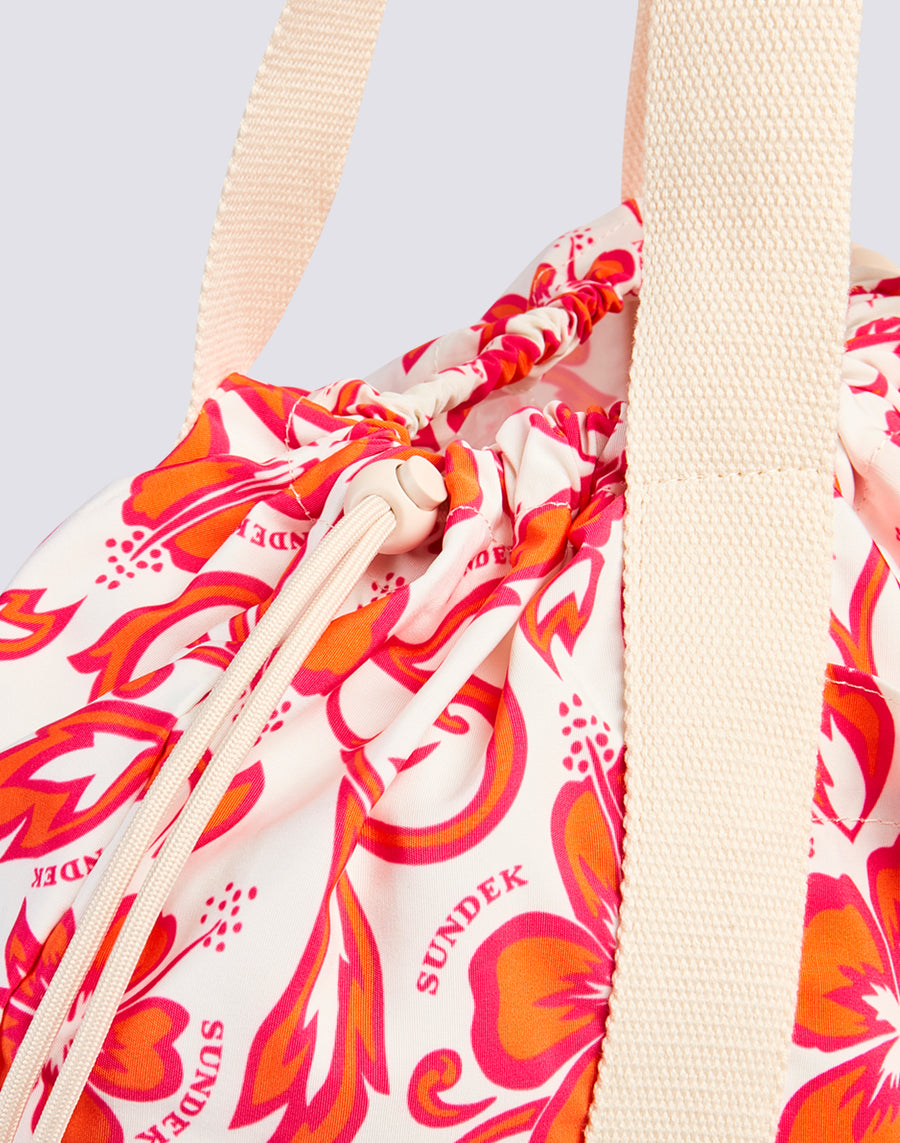 AVA - NYLON BAG WITH HANDLES AND STRINGS HIBISCUS PRINT SK23