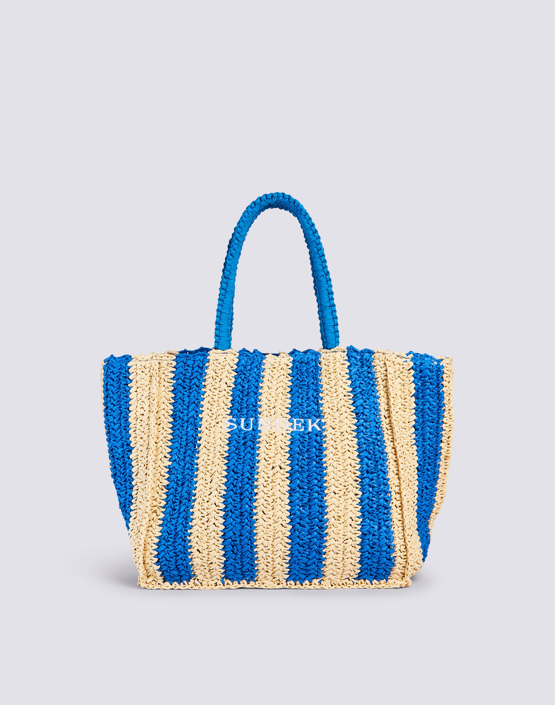 Striped Paper Straw bag with handles, zip closure and embroidered Sundek logo. Ideal for the beach, to bring with you everything you need for a day at the beach.