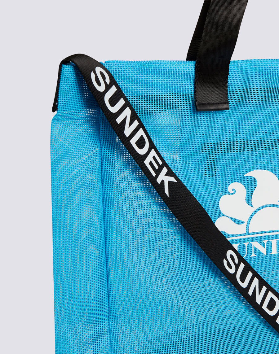 Mesh beach bag with large Sundek logo. Roomy and ideal for carrying everything you need for a day at the beach.